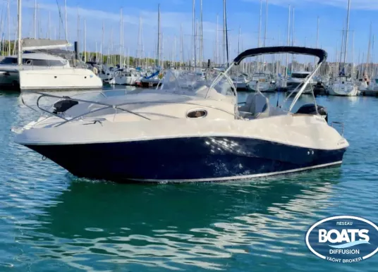 VISIBLE À LA ROCHELLE - CONTACTEZ JEAN-PIERRE OU AUDREY AU 06 09 42 34 55 - europeanboatcourtage@gmail.com - QUICKSILVER WA COMMANDER 635 motorisé Mercury Optimax 125 cv - Révision mécanique à jour - Carénage récent - Hivernage au sec chaque hiver - Walkaround de 6,35 m, polyvalent : balade, pêche, ski nautique et petite croisière - Facile à transporter