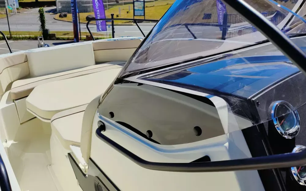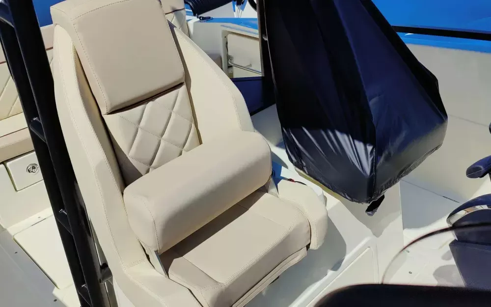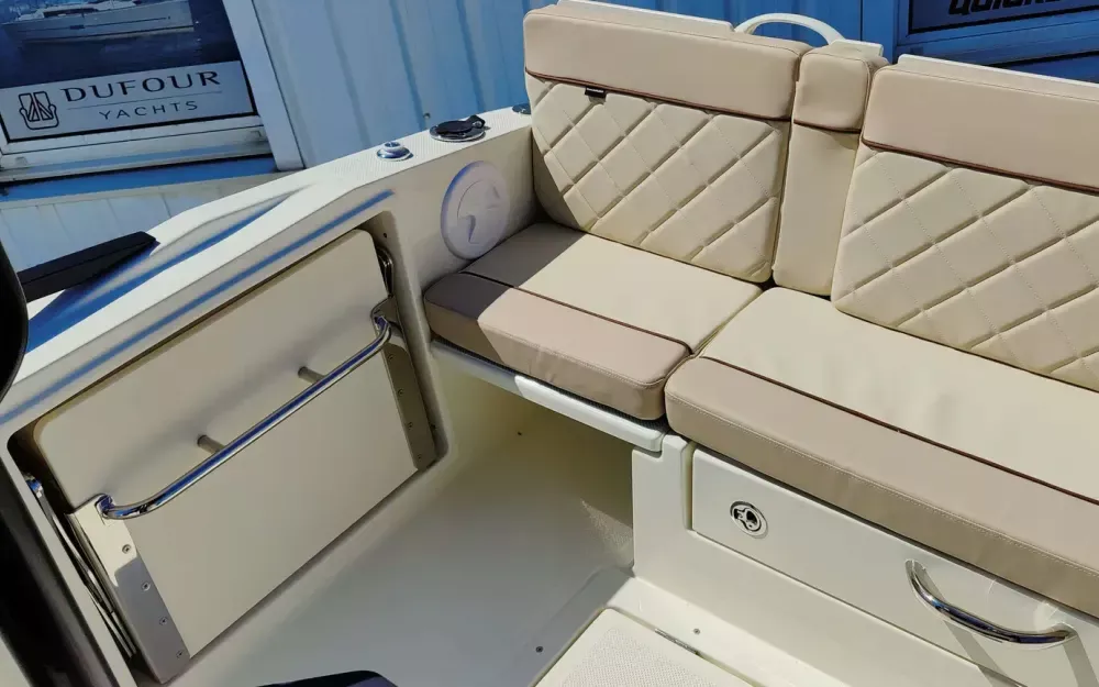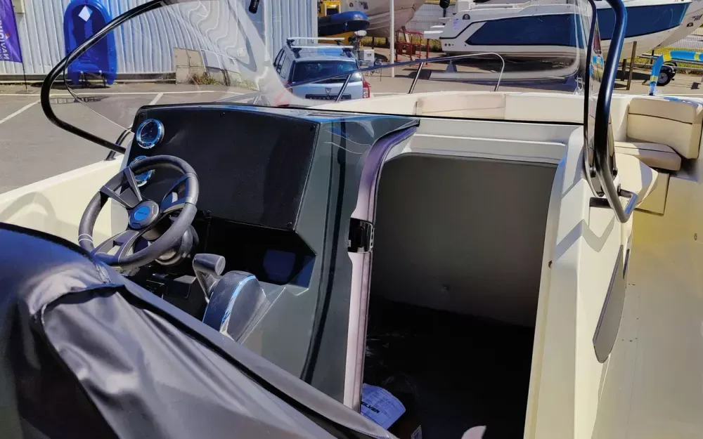 Davier à rouleau, échelle de bain, feux de navigation, baille à mouillage, cockpit auto videur, porte cannes à pêche, plateformes de bain, éclairage LED de courtoisie et cabine, coussins avant, volant ajustable en hauteur, prise électrique 12 v, compteur/compte-tours SmartCraft, banquette arrière, siège baquet pilote pivotant et transformable en bolster, siège de copilote, sellerie de cockpit, rangements sous banquette arrière, table de cockpit, hublots ouvrants, active Trim, pré équipement HB, montage doubles batteries, direction hydraulique, extincteur, détecteur de CO², application mobile VesselView