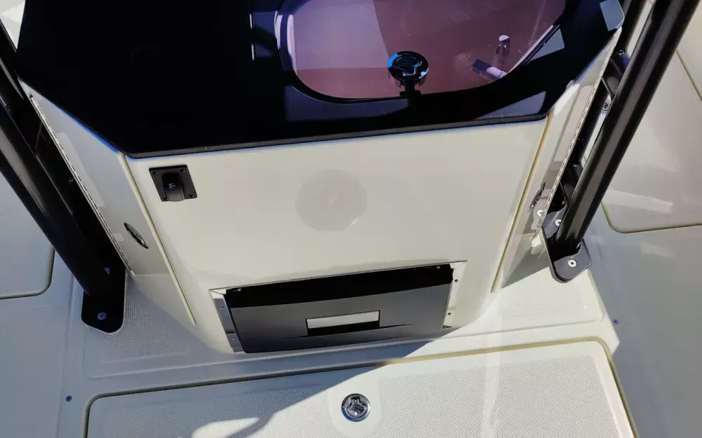•Vivier (couvercle transparent), évier, table à découper + tiroir réfrigéré + douchette de cockpit