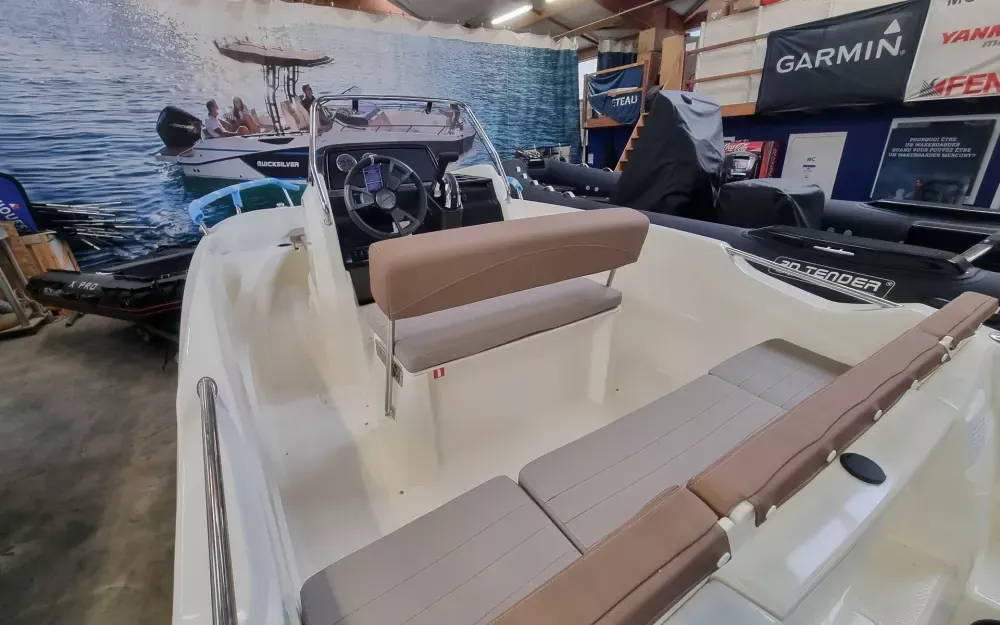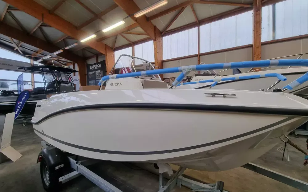 L’Activ 505 Open modèle 2023 est équipé d’un moteur hors-bord Mercury de 50cv, garanti 5 ans