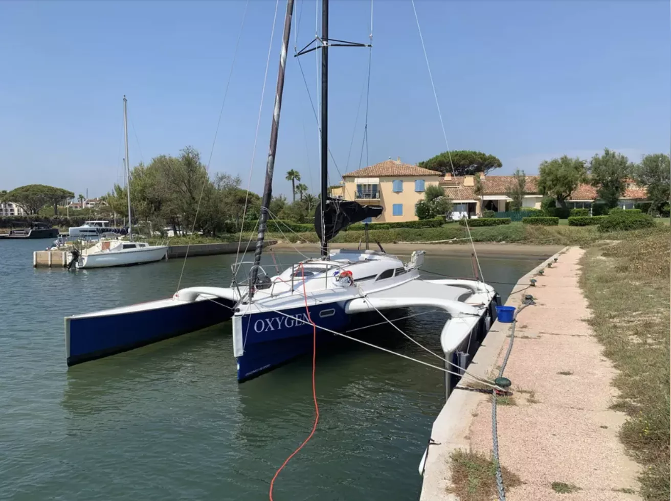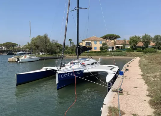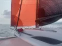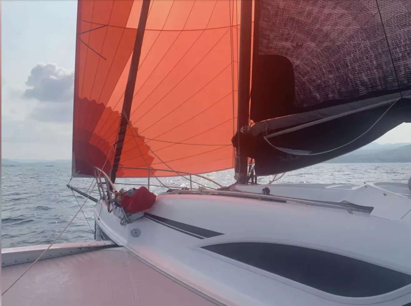 Moteur hors-bord Honda 15cv 2022 + nourrice 12L. 1 cabine double à l’avant, 1 cabine d’appoint à l’arrière. Code 0 de 2021, Grand-voile + génois de 2016. Trampolines de 2021.