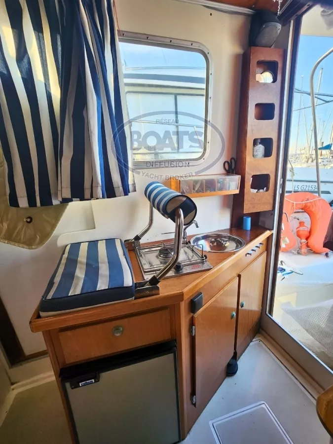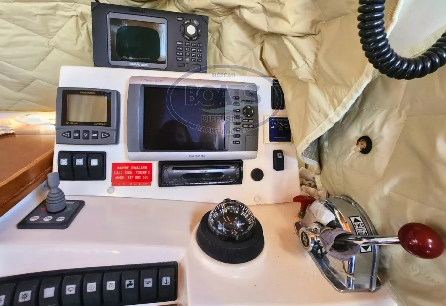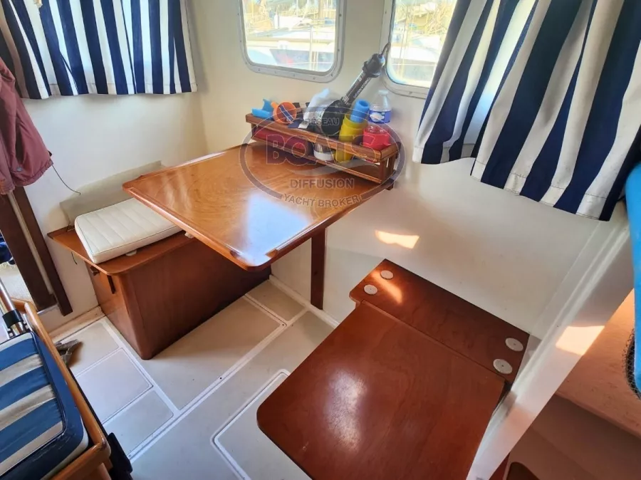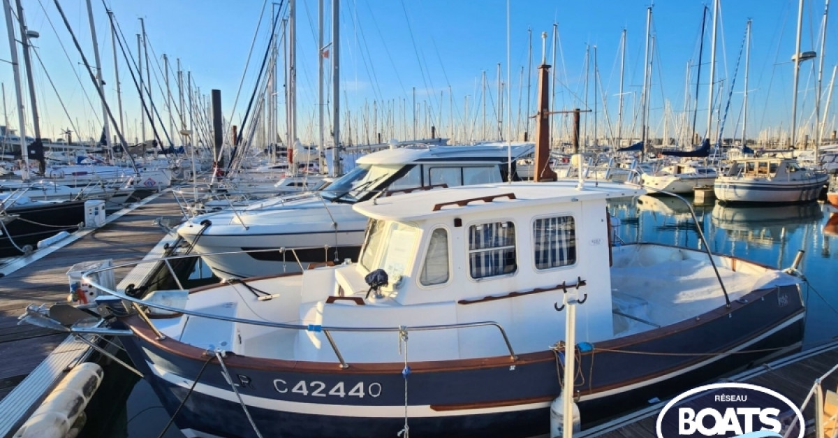 VISIBLE À LA ROCHELLE - CONTACTEZ JEAN-PIERRE OU AUDREY AU 06 09 42 34 55 - Le Rhéa 750 Timonier est idéal pour les amateurs de pêche côtière et de balades en mer. Son cockpit spacieux et son poste de pilotage abrité offrent confort et sécurité. Les équipements de ce navire incluent un guindeau électrique, un propulseur d'étrave, un GPS, un sondeur, une VHF et un réfrigérateur.