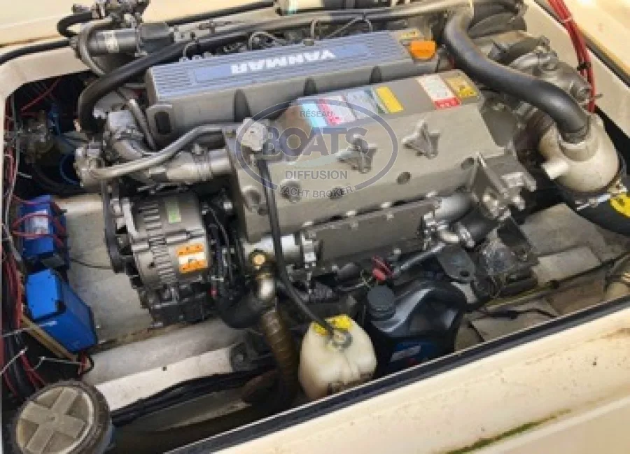 ANNÉE 2023 : remplacement du tuyau d'échappement, nettoyage du coude d'échappement, remplacement de la turbine de la pompe à eau, remplacement du propulseur d'étrave et du relais.