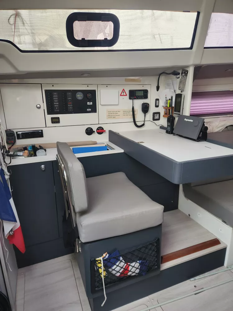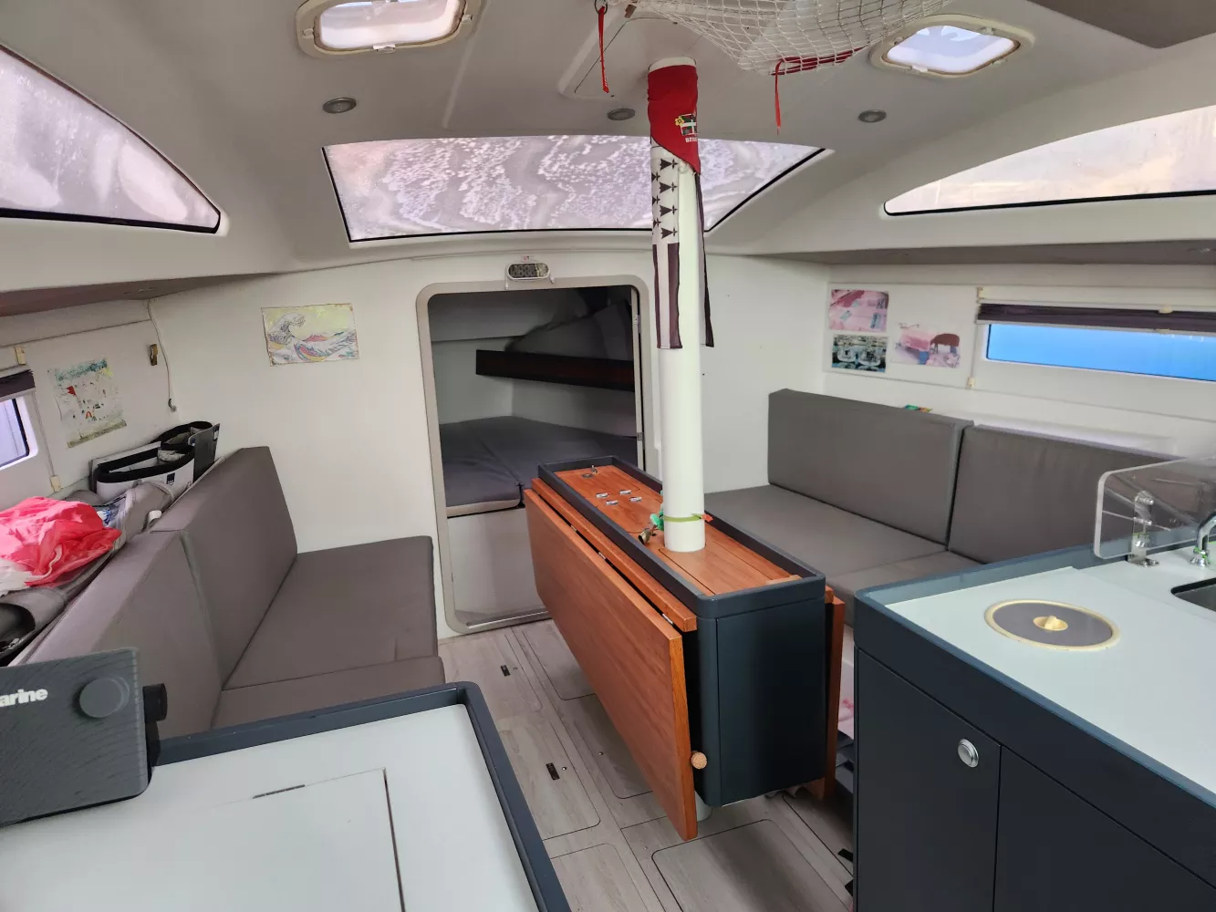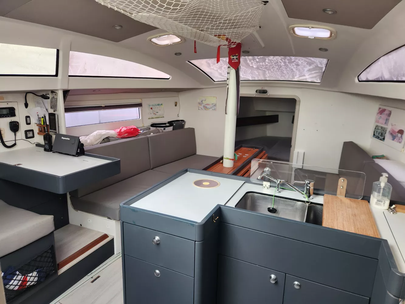 Un des grands atouts de ce voilier est sa visibilité remarquable depuis le carré, avec une vue panoramique qui apporte lumière et plaisir lors de la navigation.