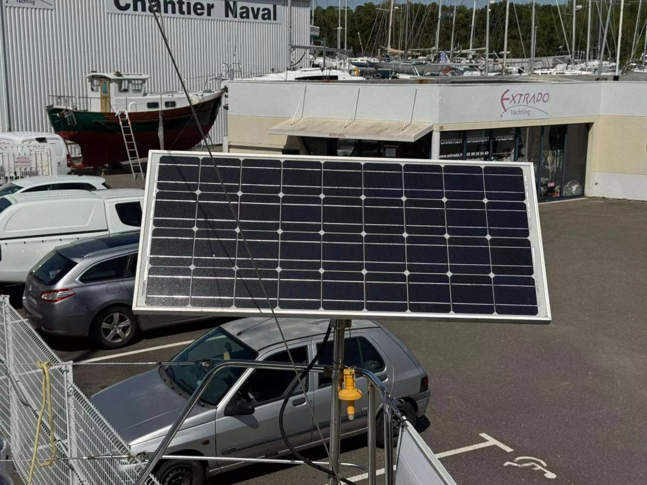• Panneau solaire de 100w fixé sur un mât en inox orientable