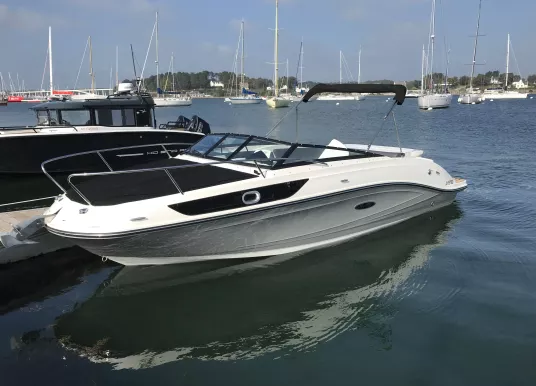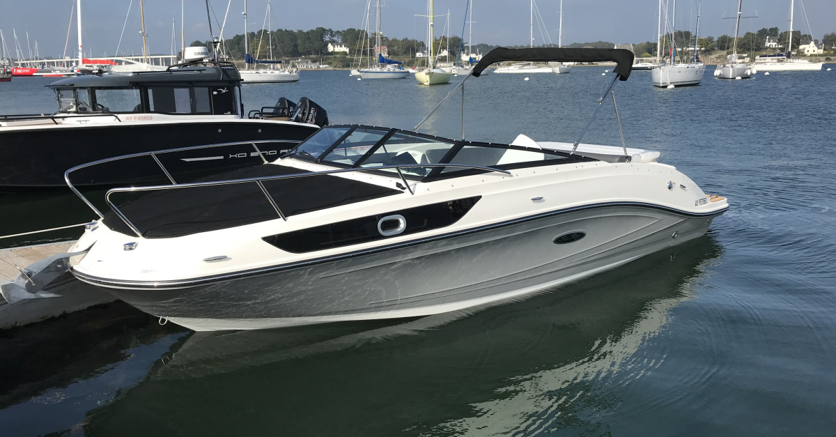 SEA RAY 230 SUN SPORT , 2017, première main, moteur in-bord mercruiser 250 cv, embase BRAVO III + DTS + Activ trim, bimini, tapis de sol, table de cockpit, bain de soleil’ wc chimique, sea deck sur plateforme de bain, guindeau électrique. Taud de soleil. Bon état général, factures d’entretien annuel.