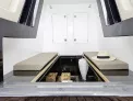 Avec ses 11,29 m de longueur et 4,30 m de largeur, le bateau offre un plan de pont remarquable, stable et sécurisant, aussi agréable en navigation qu’au mouillage. Son réservoir carburant de 700 litres permet de longues sorties en toute sérénité, y compris en navigation hauturière.