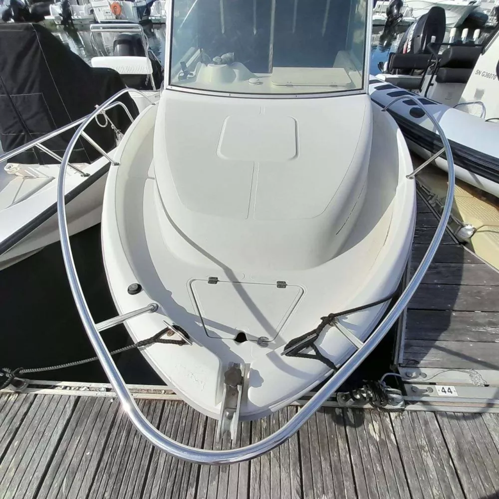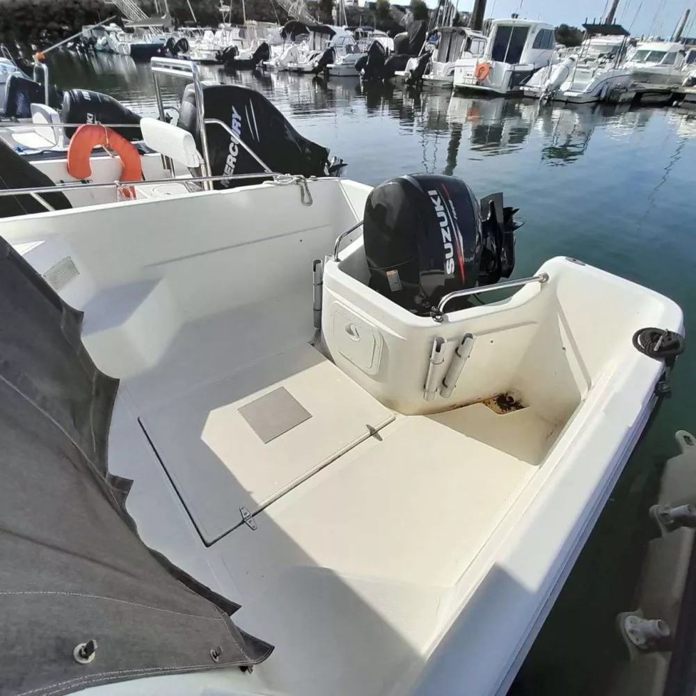 Ce Sessa Ocean 550 Timonier de 1999 est en très bon état général pour son âge. C'est un bateau polyvalent, parfaitement adapté pour la pêche et les sorties en mer en toute sécurité. Son moteur Suzuki 70 CV de 2015, fiable et récent, n'a que 460 heures de navigation.