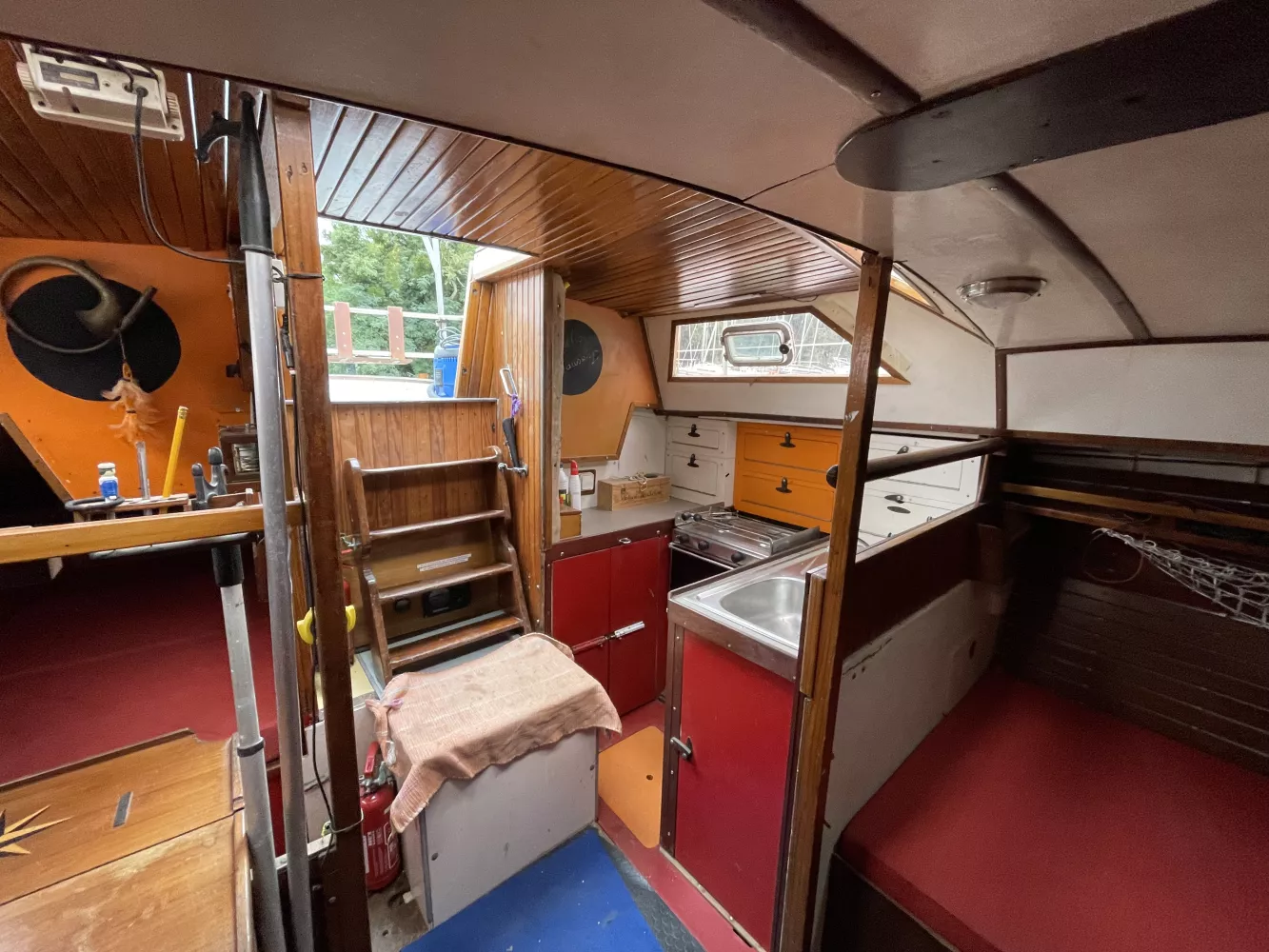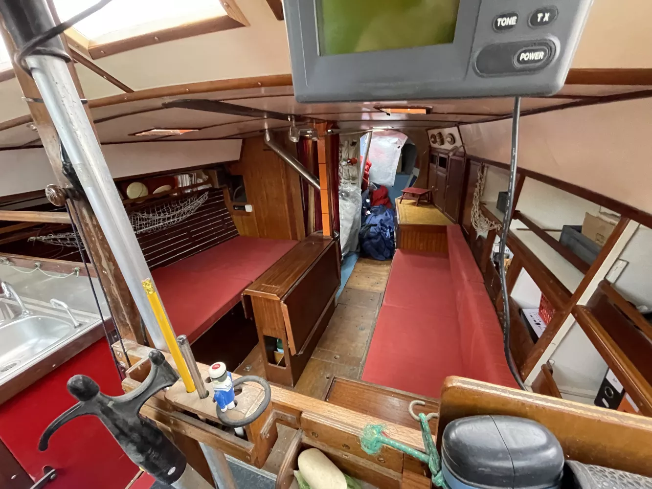 Son intérieur ouvert offre une grande sensation d’espace et de clarté, idéal pour la vie à bord sur le long terme. Ce bateau a déjà connu le large et a commencé a être préparé sérieusement pour continuer le voyage.