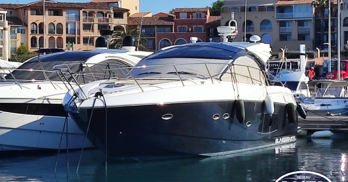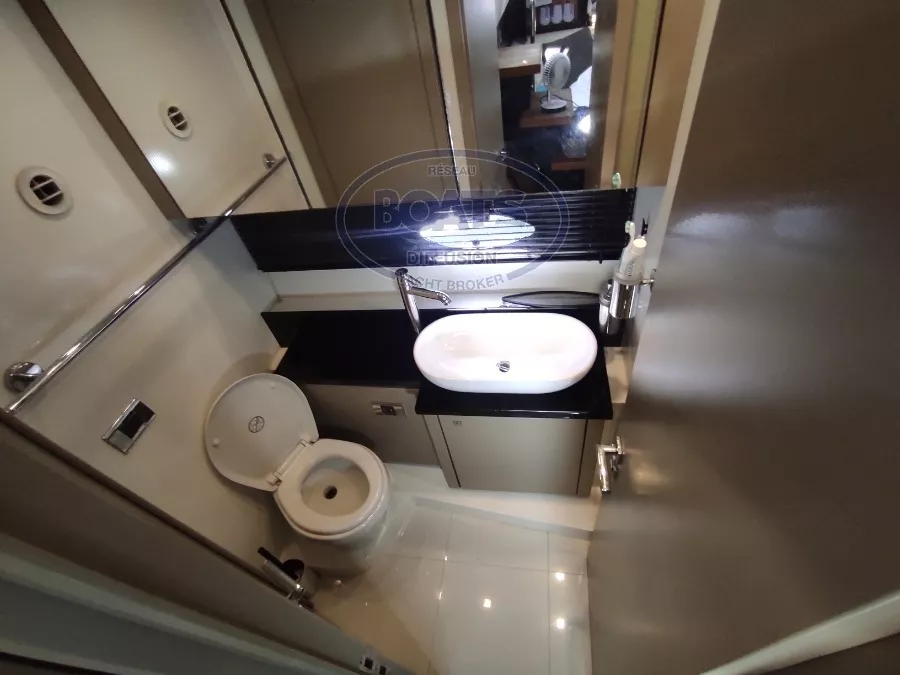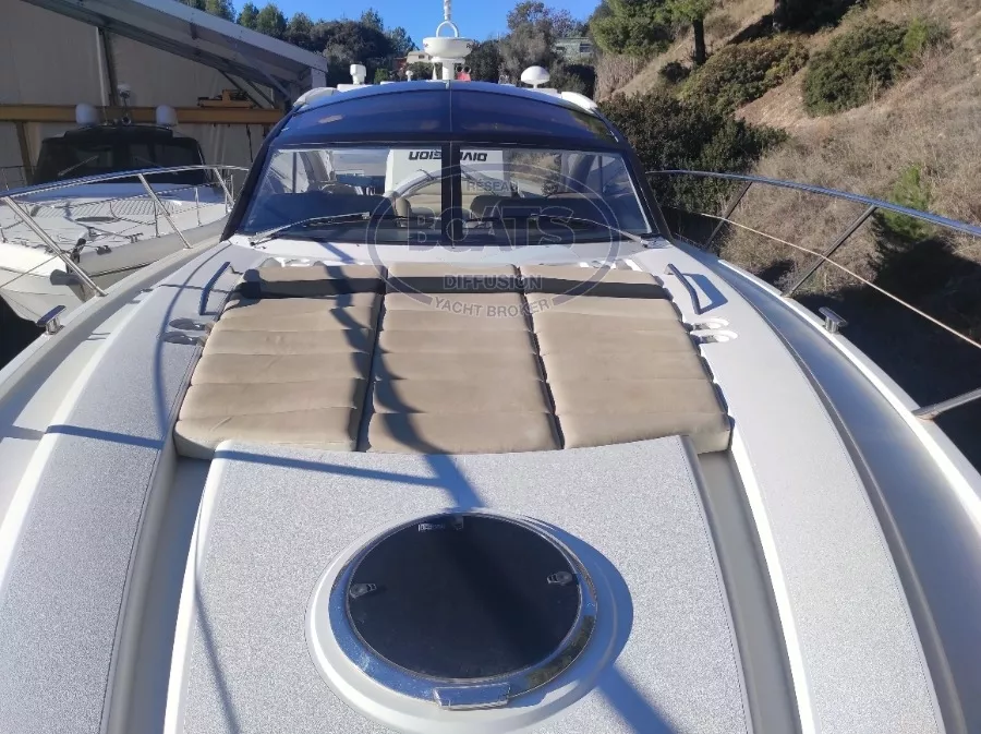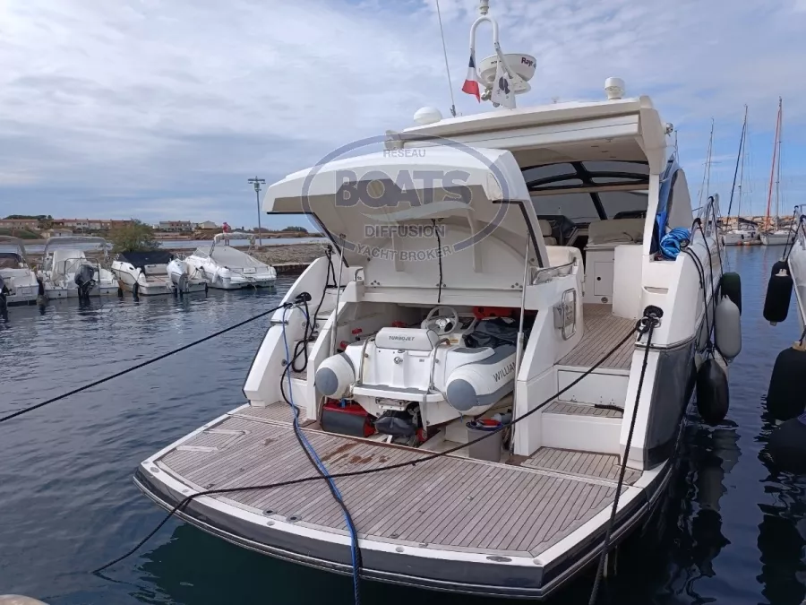 ce magnifique SUNSEEKER Portofino 48 est un croiseur rapide d'exception. Le chantier Sunseeker s’inscrit dans la recherche de l’excellence et de la perfection. les yachts du chantier Sunseeker sont solides, performants et marins. L’engagement du chantier est de créer des unités faites en combinant savoir-faire traditionnel et technologie moderne. Ce Portofino 48 de 2012 est dans état exceptionnel, entretenu parfaitement par son propriétaire. Toutes les révisions et entretiens sont suivi par des professionnels rigoureux. Propulsé par deux moteurs Penta DPS - IPS600 de 435 cv. Une vedette sportive grand luxe et grand confort, le Sunseeker Portofino 48 offre un superbe aménagement intérieur avec une suite principale à l'arrière sur toute la largeur du bateau, très lumineuse grâce à ses immenses baies vitrées. Des équipements de qualités: Grand bains de soleil, plage arrière hydraulique immergeable, grand salon de cockpit, hard-top électrique, électronique Raymarine, Sono Fusion mp3 Bluetooth, Purificateur d'eau /Plaque vitrocéramique 2 + dinette cockpit avec Evier et plancha, garage est volumineux pour accueillir une Williams-jet-tenders 325, et de nombreuses options détaillées dans l'inventaire.
