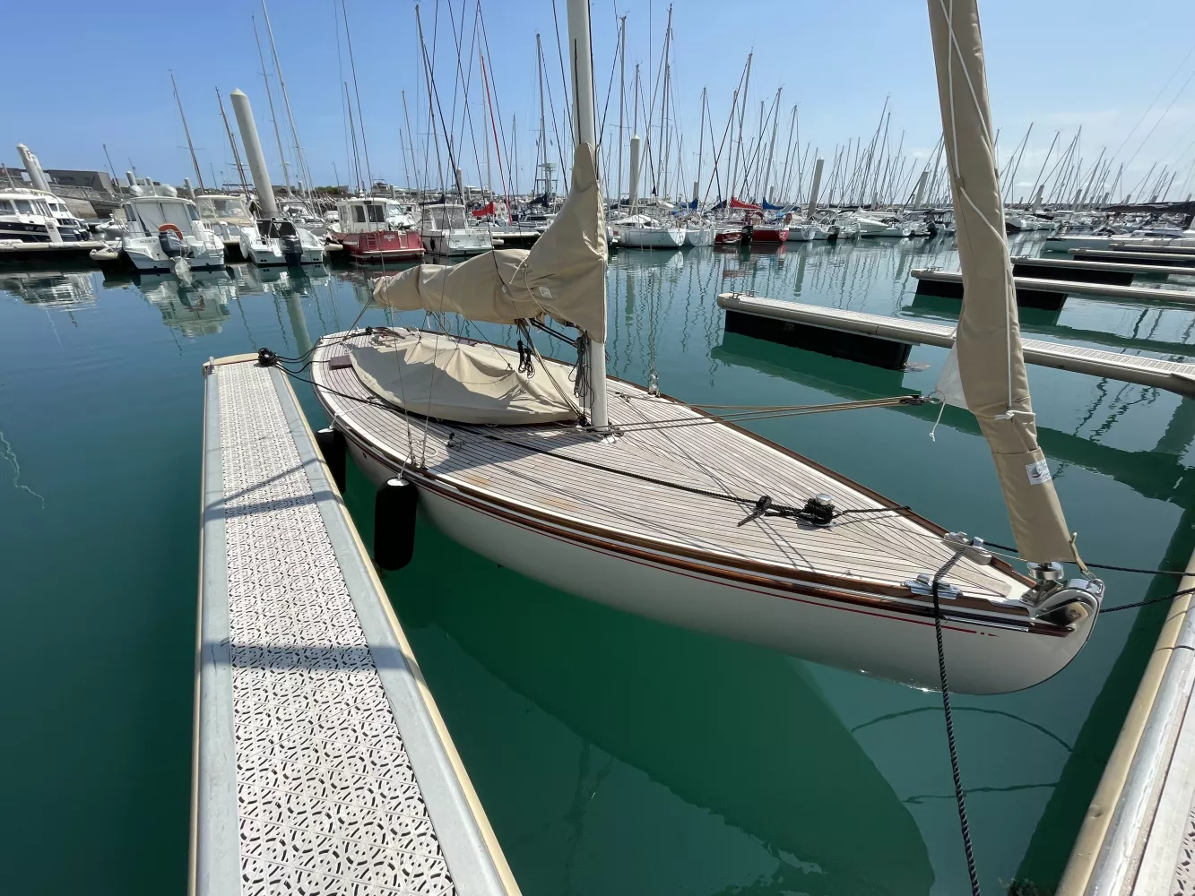 Capable d'échouer grâce à ses béquilles, il s'adapte parfaitement aux ports à mouillage ou au plan d'eau intérieure.