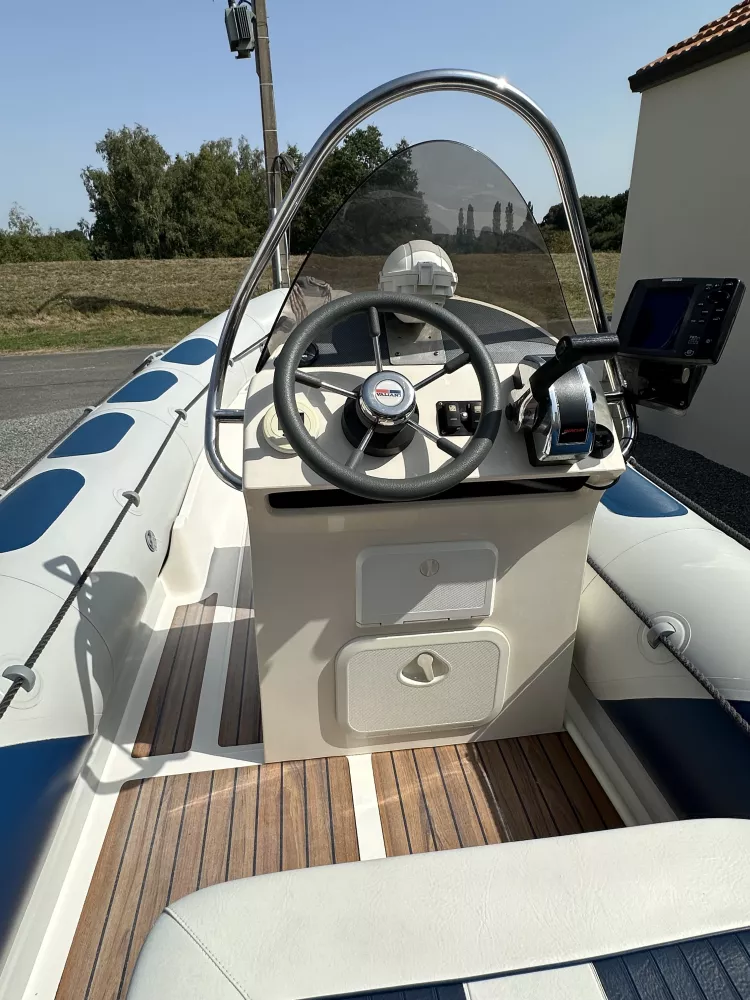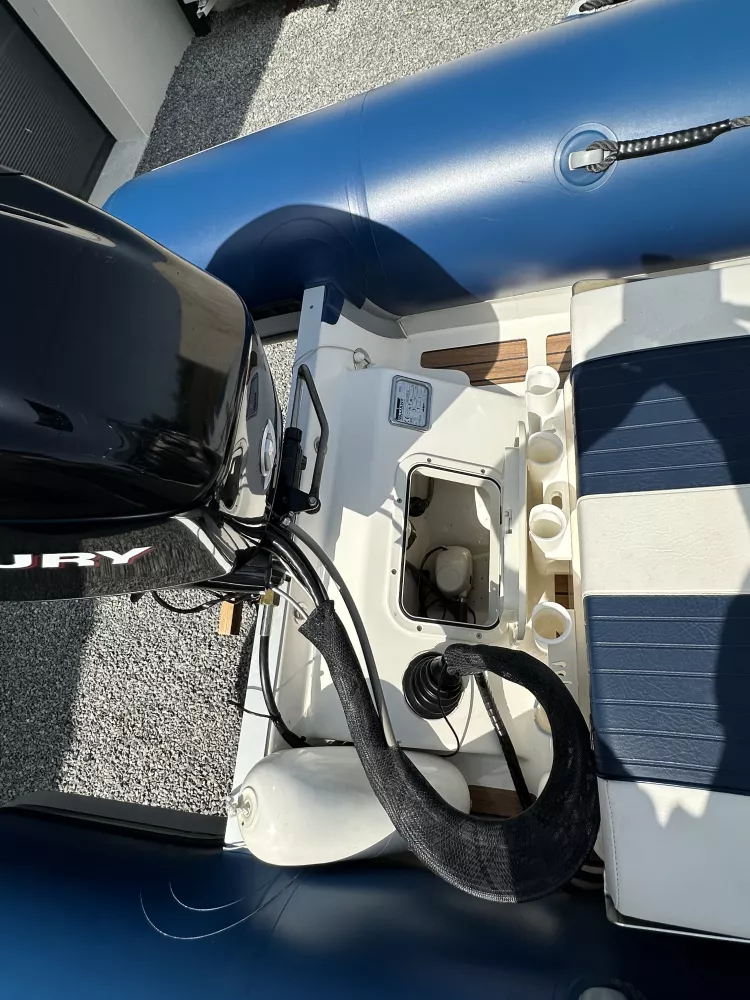 Réservoir intégré à l’avant de 73 litres Pneumatique en PVC état irréprochable avec moteur mercury 50 ch 4t EFI avec 86h de fonctionnement depuis 2008 il sort de révisions avec changement pompe à eau, joints et vidange embase, changement des anodes.