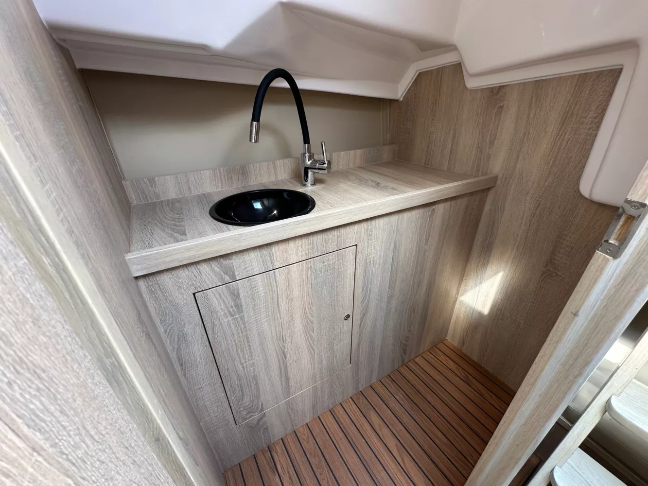Intérieur, eau sous pression electrique, eclairage Leds, Salle d’eau avec vasque et WC chimiques.