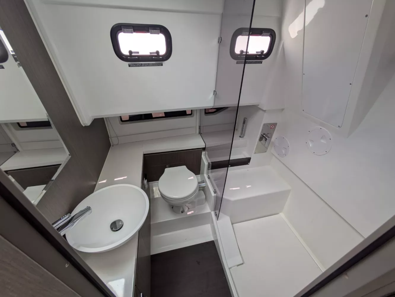 FINITION PREMIERE, PACK AUDIO UPGRADE, PACK ELECTRONIQUE UPGRADE, EMETTEUR RECEPTEUR GARMIN AIS 800, VHF GARMIN 315 ET GHS 11, BANQUETTE DE COCKPIT ARRIERE 3 SIEGES - HONEY, TABLE GRP POUR COCKPIT AVANT, ECLAIRAGE POP-UP DANS LE COCKPIT AVANT, COCKPIT AVANT ET PASSAVANTS TECK, GALERIE RANGEMENT SUR LE TOIT DE LA TIMONERIE, FOND DE COCKPIT ET PLATEFORME TECK, KIT AMARRAGE, TIMONERIE / CABINE AVANT - DOLCE IVORY/MOCCA (Cuir), 2 LUMIERE SOUS-MARINES RGB LUMISHORE, VERSION ARCEAU INOX AVEC RANGMENT PARE BATTAGES, TABLE DE COCKPIT ARRIERE, RIDEAUX DE TIMONERIE, 2 POUFS DANS LE CARRE, MOUSTIQUAIRES DE HUBLOTS, ECHELLE DE BAIN AMOVIBLE POUR PORTE DE COUPEE, BATTERIES, COUCHAGE DOUBLE DANS LE CARRE, TOILE OMBRAGE DE COCKPIT AVANT SUNWORKER CHARCOAL.