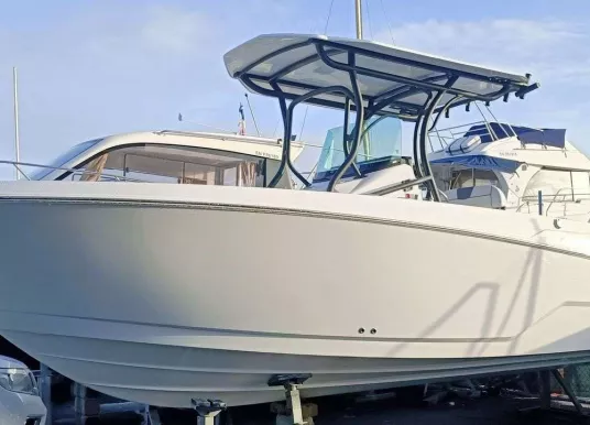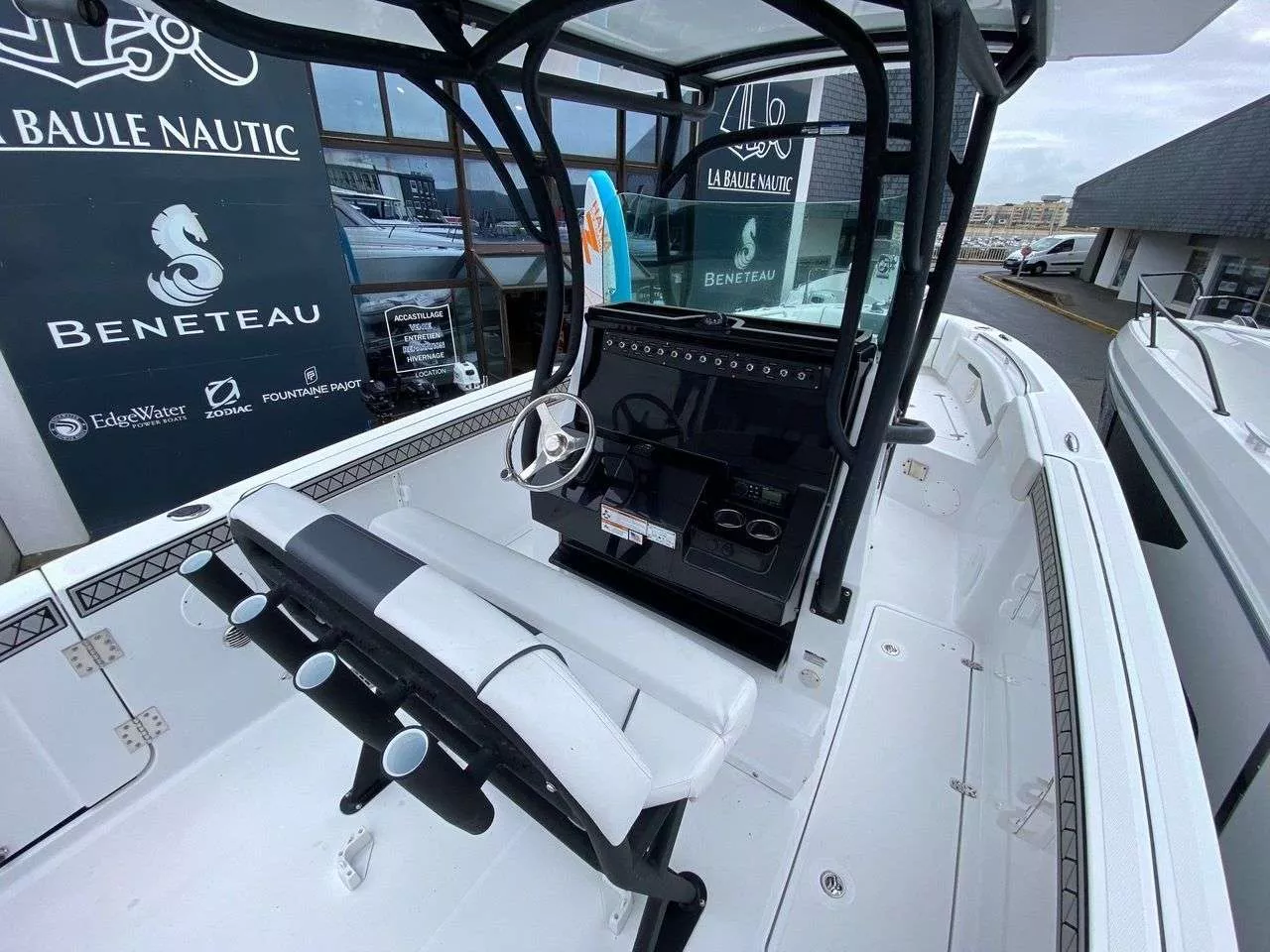 Équipement / Navigation : Le poste de pilotage est protégé par un T-Top aux montants noirs, offrant à la fois une robustesse structurelle et un look résolument premium. L'équipement est complet :