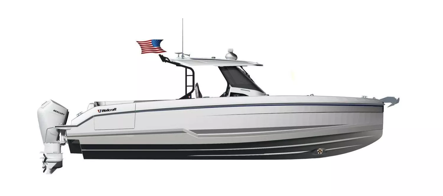 Grâce à la technologie W.I.S.E. (Wellcraft Infujection Structure Engineering) et à la coque signée Navia, le bateau bénéficie d’une structure plus légère, plus rigide et plus performante.