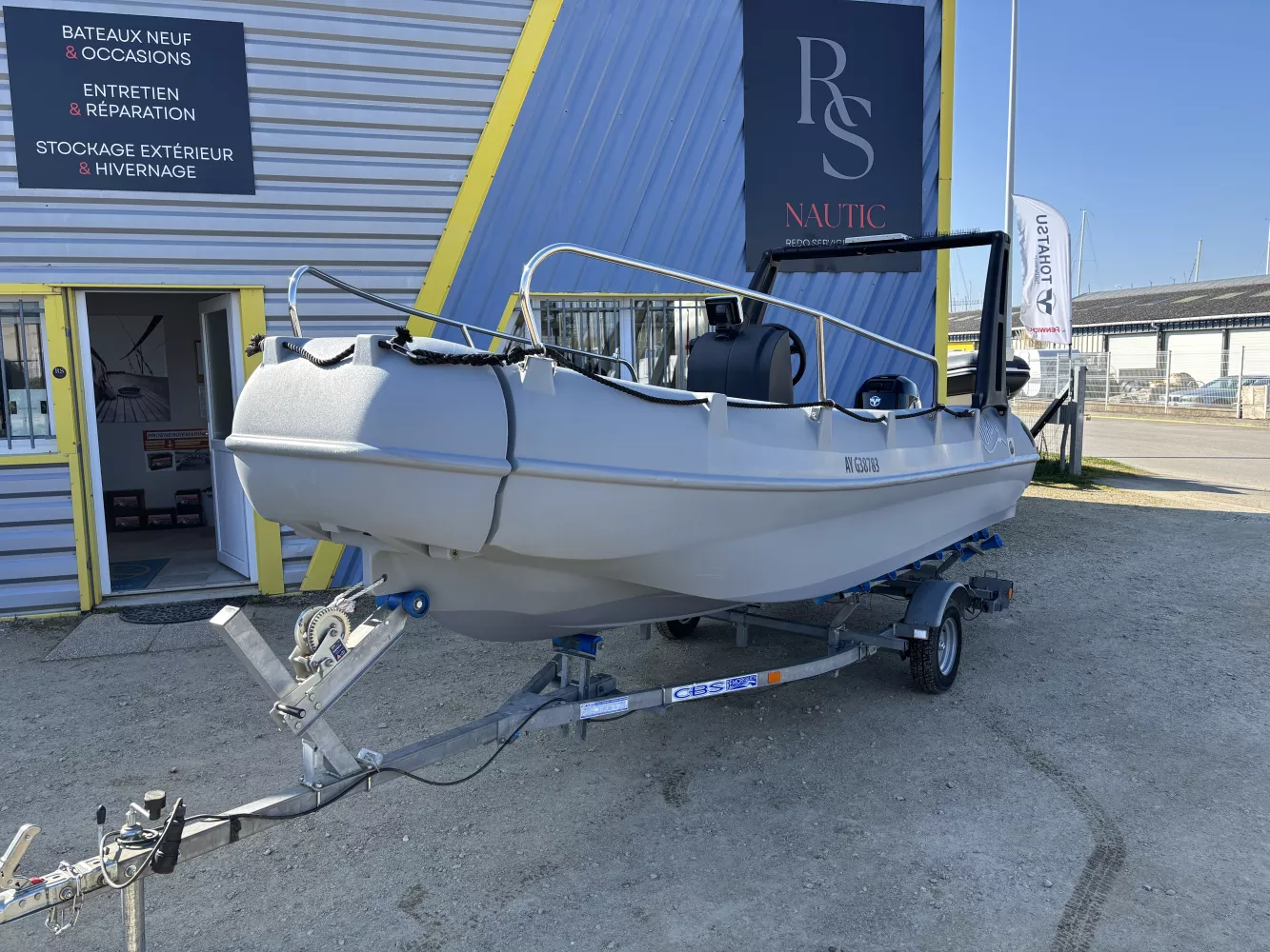 Redo Services Nautic, vous propose à la vente ce pack Whaly 455 gris clair équipé d'un moteur 30cv Tohatsu d'occasion.