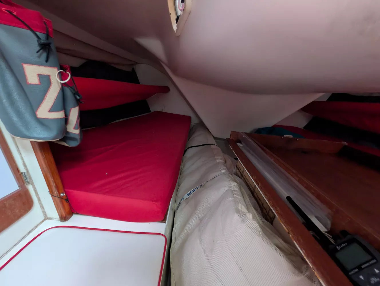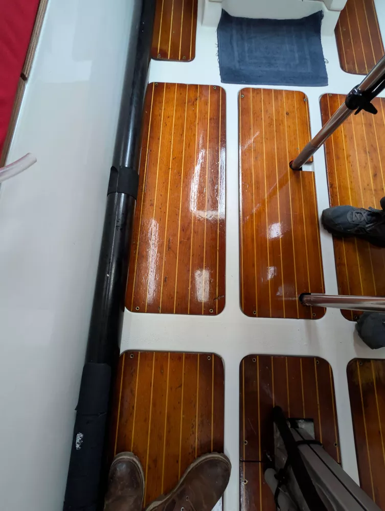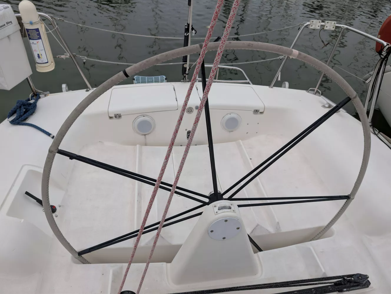 Accastillage surdimensionné : Du premier choix qui fonctionne encore parfaitement après des années de sollicitation en régate.