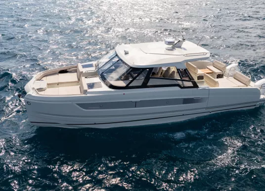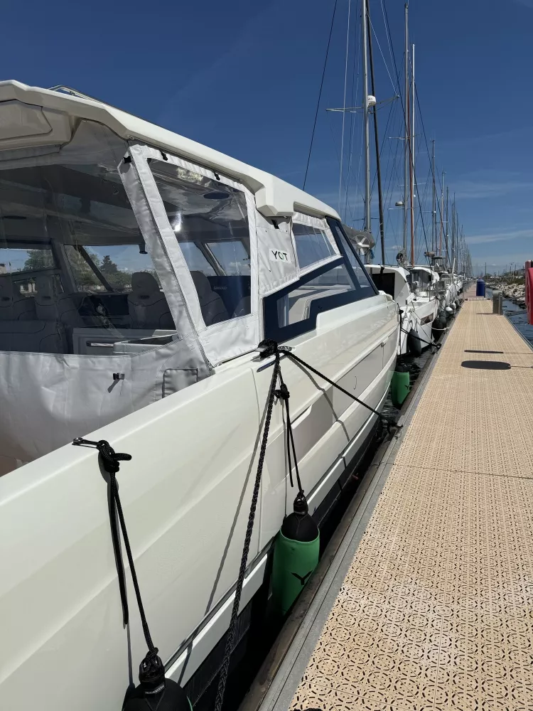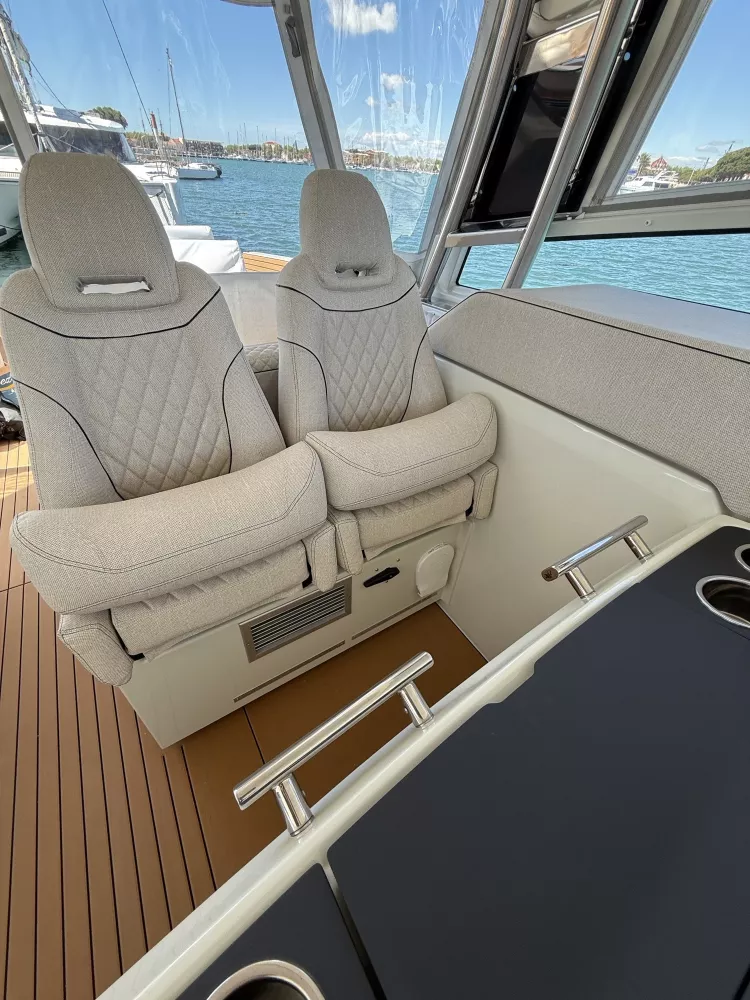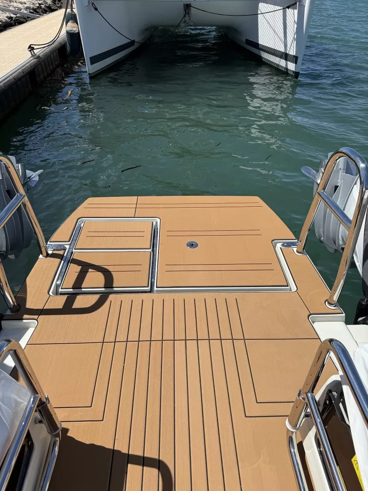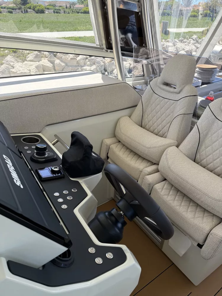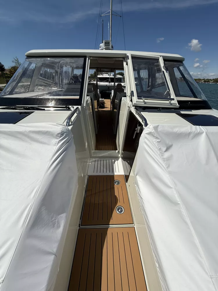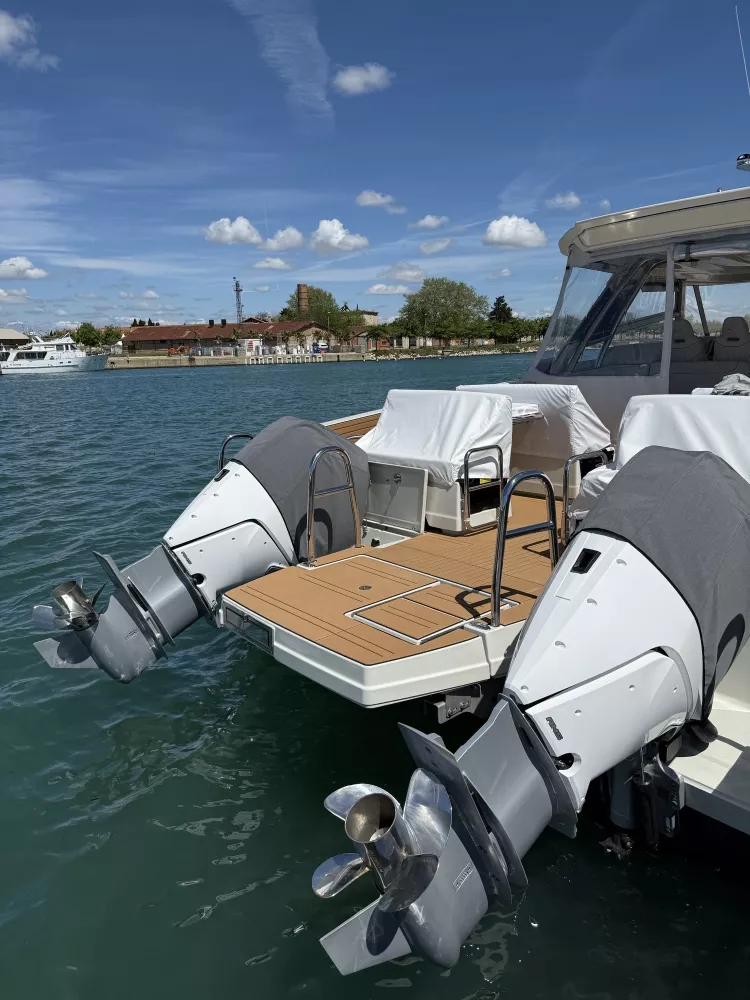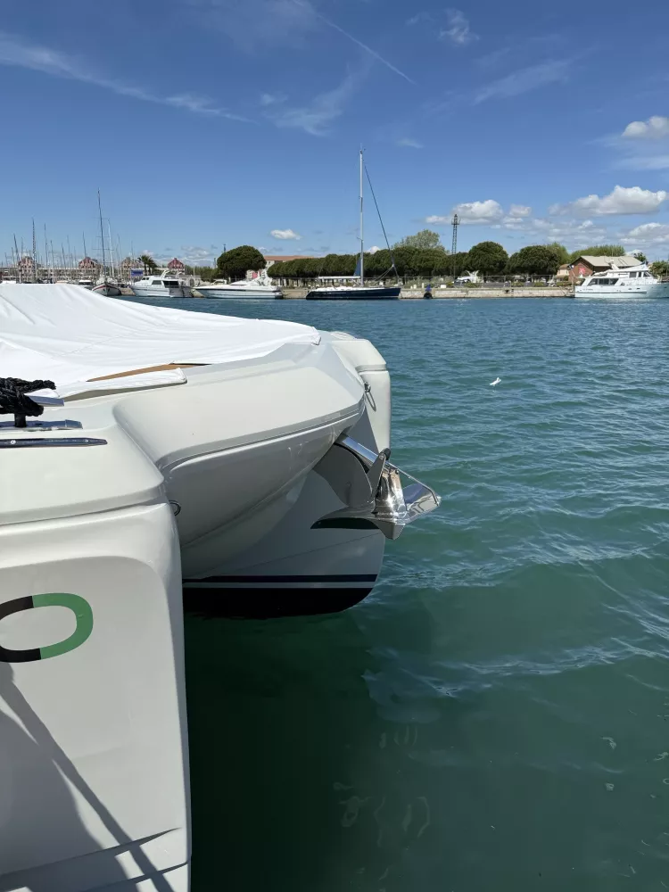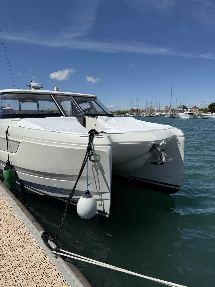 Elu bateau de l’année en 2025, ce catamaran YOT 41 propose une terrasse sur la mer ludique et fonctionnelle, disposant également d’un comportement marin irréprochable. Les deux cabines indépendantes offrent un niveau de confort pour partir en famille ou entre amis. Motorisé avec deux moteurs hors-bord Mercury Verado 400 CV V10 blancs + Joystick JPO.