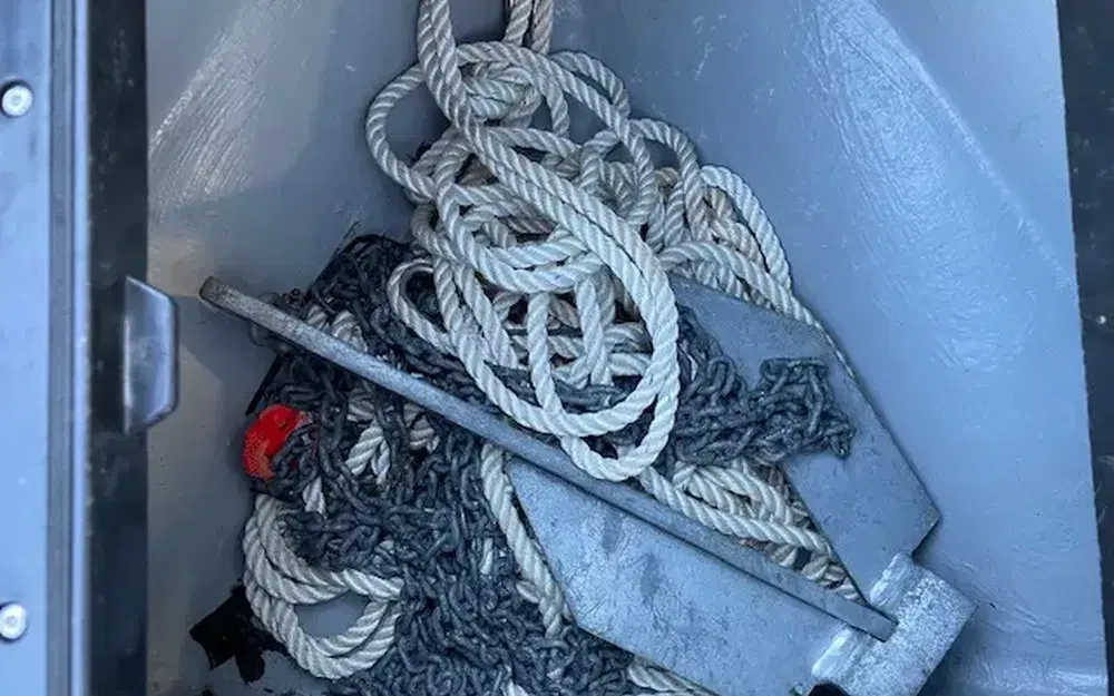 Du matériel de sécurité, d'une ligne de mouillage et d'un compas de route.