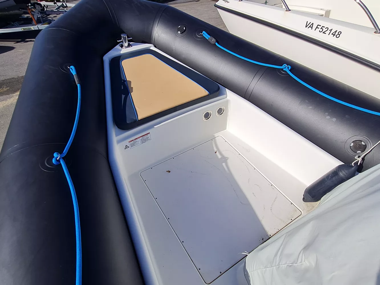 Equipements : flotteur pvc strongan noir / Bitte d'amarrage avant / Baille à mouillage + coffre / Coussin de coffre avant / Console avec housse de protection / combiné GPS sondeur Garmin 92 SV + sonde GT15 / Carte Garmin 008r / système audio Fusion / Direction hydraulique / Bolster avec rangement / Dossier de bolster / Grande banquette arrière / Mât de ski / Supports de cannes / pompe de cale automatique.