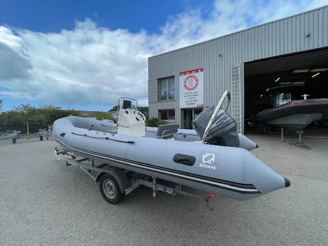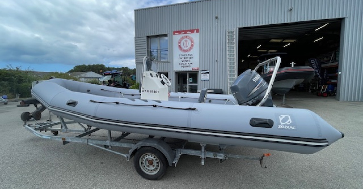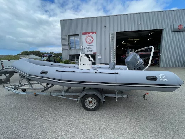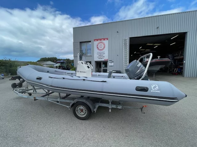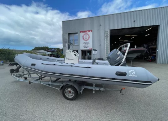 En vente chez Nautic Sport un ZODIAC PRO 16 MAN FLOTTEUR NEUF Remorque de route. Semi-rigide prêt à naviguez.
