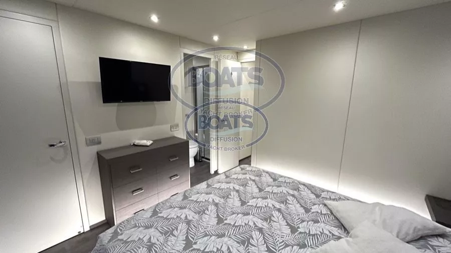 A l'intérieur, 2 Superbe Cabines, avec Lit en 160, plus carré salon transformable,