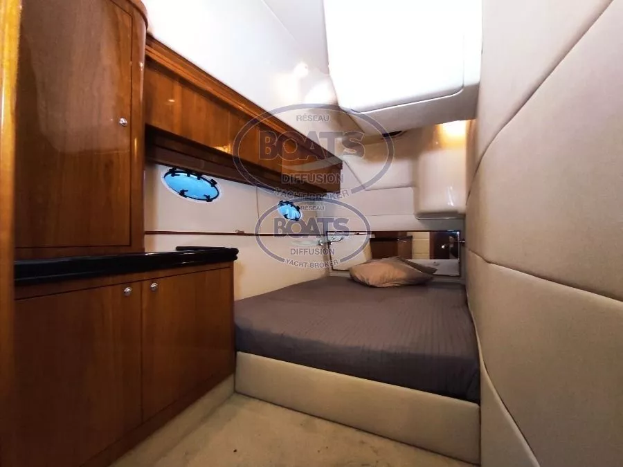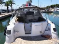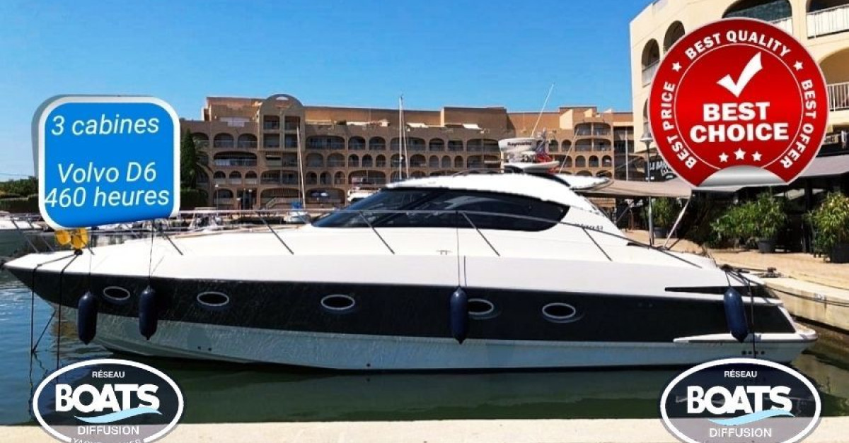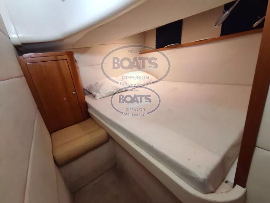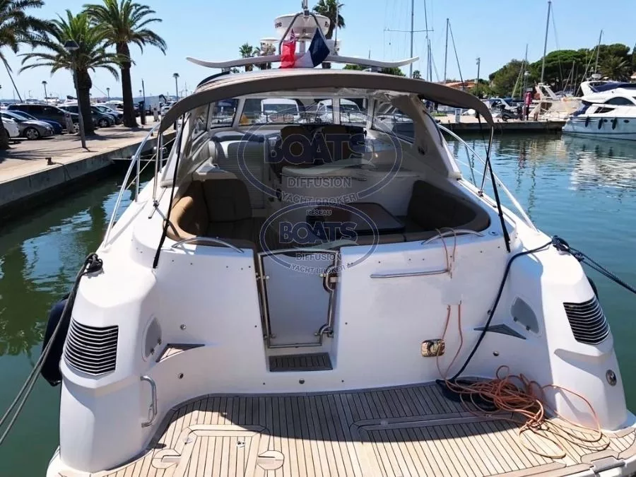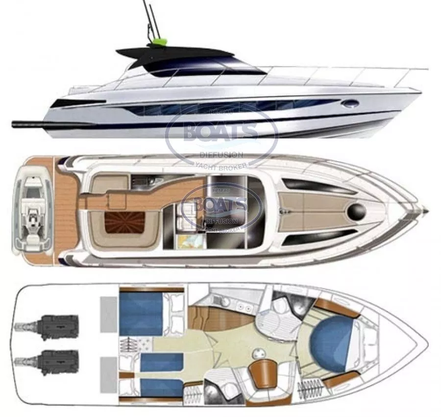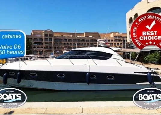 ELAN Power 42 hard-top en version 3 cabines. Cette Vedette rapide a des lignes élégantes, un pare-brise sur 180° doté d'un hard-top offre une bonne visibilité au pilote mais aussi aux passagers. L’habitacle reste lui aussi très soigné. Il bénéficie de boiseries très claires qui agrémenté par les nombreux hublots, procure une grande luminosité à l’intérieur de l’unité. Une unité fonctionnelle et luxueuse dans son aménagement et le choix des matériaux. Grâce à ses 2 moteurs Volvo 350 CV (460 heures), ce bateau navigue à une vitesse de croisière de 22 nœuds et à une vitesse maximale de 37 nœuds.