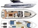 Un très grand salon sur le pont permet d'accueillir facilement 6 a 8 personnes, le bain de soleil avant confortable et spacieux sera apprécié de vos invités ou de votre famille. Doté d'une plage de mise à l'eau en teck intégrant une échelle de bain. Une très belle cuisine avec four multifonction, gaz, réfrigérateur, et une cuisine d'été avec plancha et second réfrigérateur, salle d'eau avec WC électrique et douche séparée.