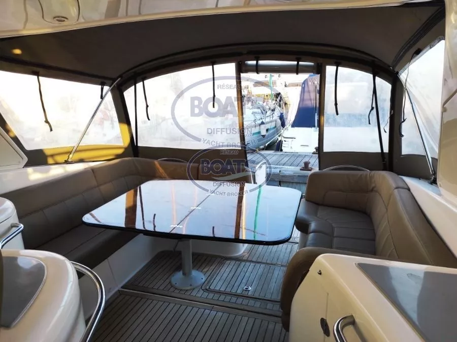 Alarme moteur, Alarme de pompe de cale, Eau sous pression, Douche de cockpit, Flaps hydrauliques, Indicateurs de flaps, Éclairage de courtoisie, Plateforme arrière teck, Pompe de cale automatique, Cockpit en teck, Prise de quai, Guindeau électrique double commande, Echelle de bain, grande table de cockpit escamotable.