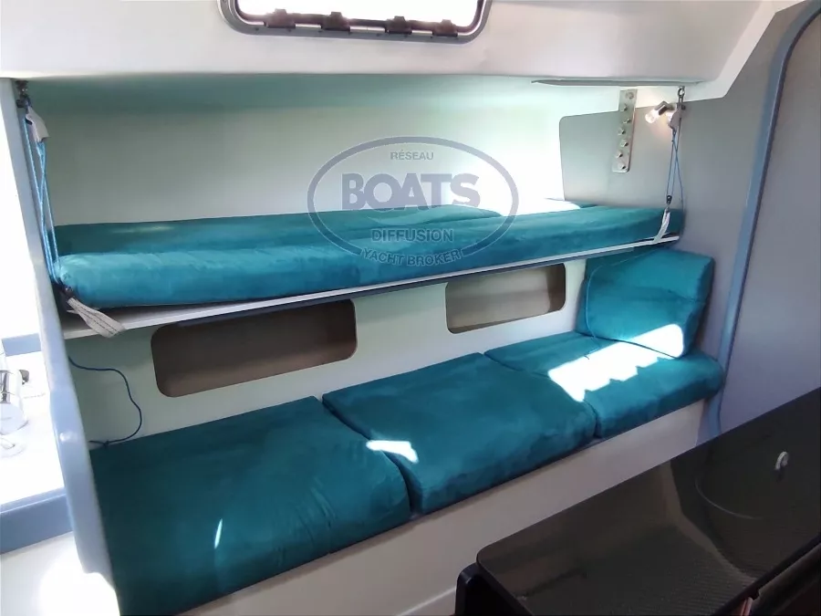 Tout est neuf des vaigrages aux planchers, ainsi que les équipements: sellerie intérieure, pompes, chauffe eau, toute la plomberie, le wc électrique à broyeur, les vannes passe coque, tout le réseau électrique, tableau électrique, câbles, prises, éclairage 100%led intérieur et extérieur, ainsi que l'électronique de 2023.L'éclairage led complet avec plafonnier tactile + 5 prises usb.