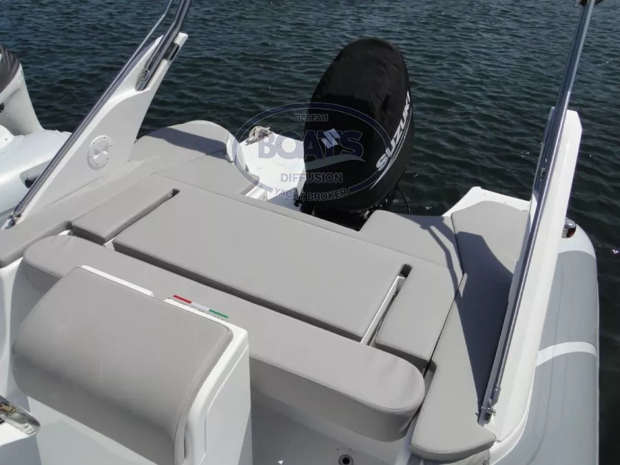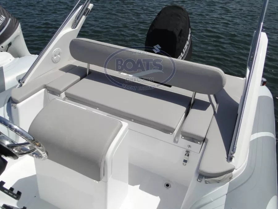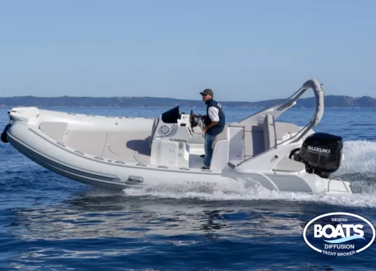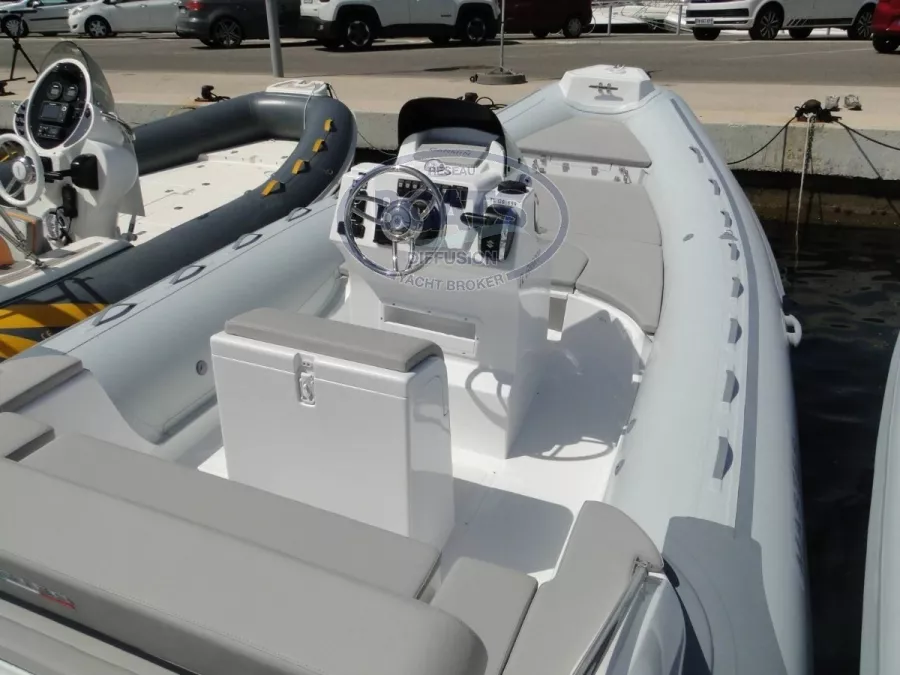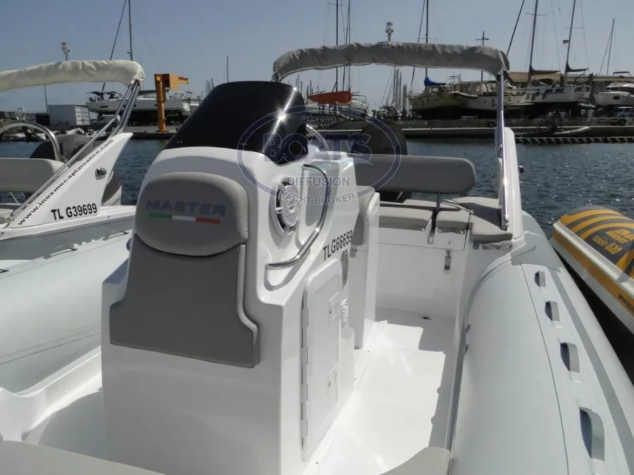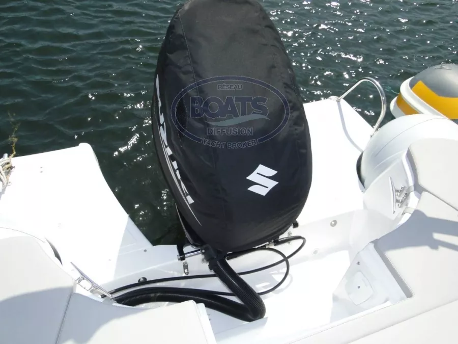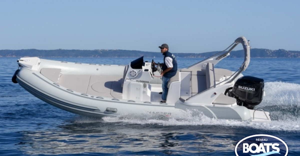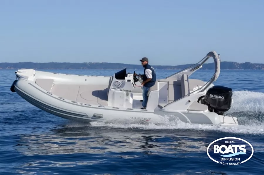 Magnifique semi rigide Master 630 Summer de 2023. Etat proche du neuf, tout juste 212 h pour un moteur HB SUZUKI 140cv parfaitement entretenu avec commande électrique. Direction hydraulique.