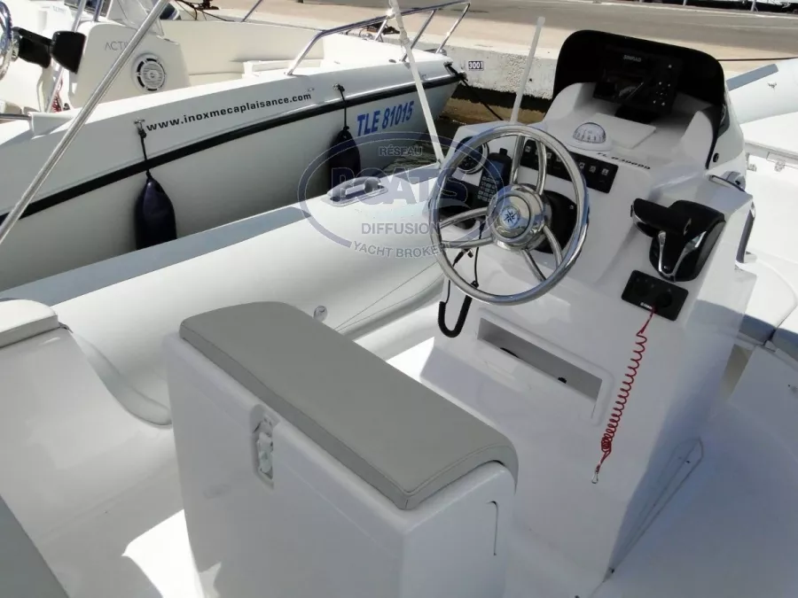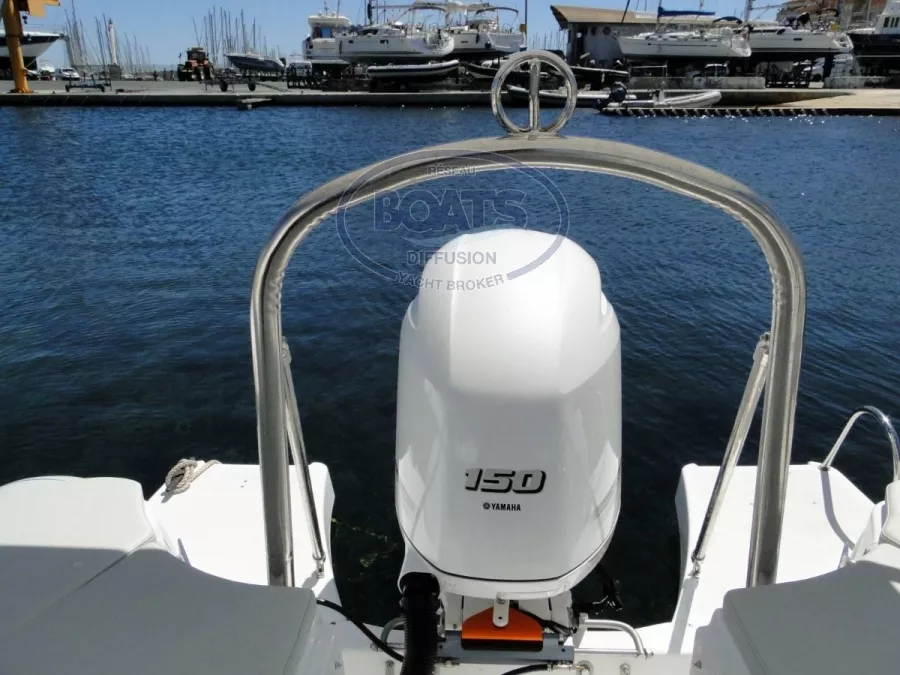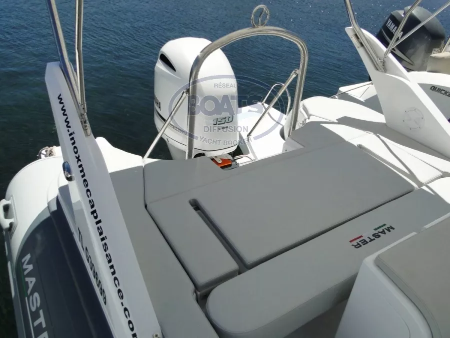 Superbe semi rigide Master 630 Summer de 2023. Propulse par un moteur YAMAHA de 150cv parfaitement entretenu avec commande électrique et direction hydraulique. Un bateau très polyvalent, doté de toutes les options pour un maximum de confort. Guindeau électrique/ Bain de soleil avant / Banquette arrière escamotable pour former un second bain de soleil / Table pique nique / Taud de soleil. Plateformes arrières avec échelle de bain + Mât de ski Combiné GPS Sondeur. Poste radio avec système Bluetooth et hauts parleurs. Chargeur de téléphone à induction. Ordinateur de bord. Prises allume-cigare et USB.