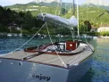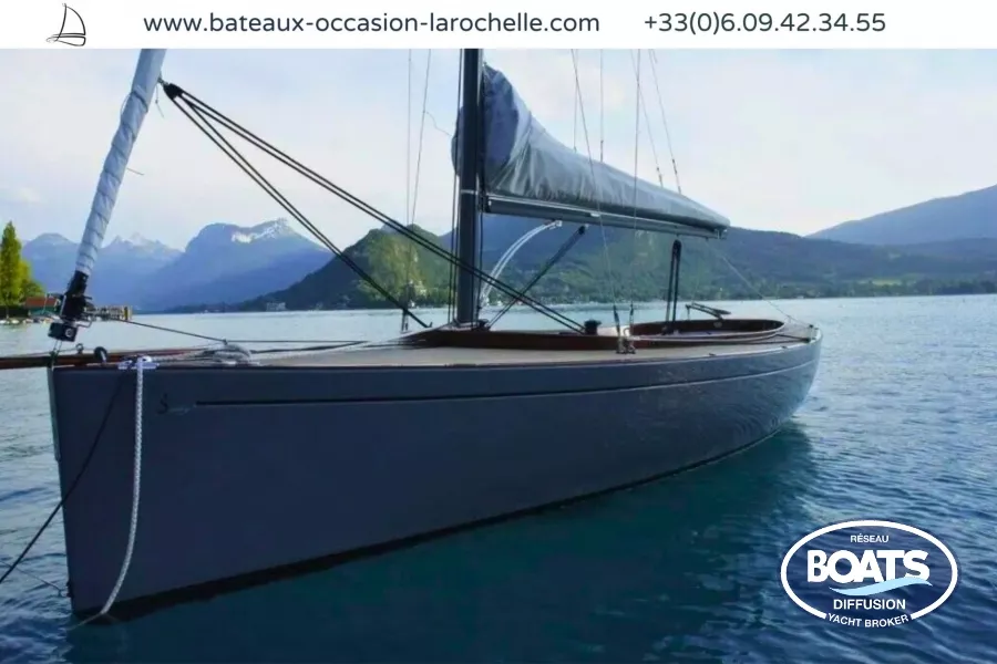 Côté confort, il est équipé d’un vaste cockpit central doté de deux winchs Harken, avec un retour centralisé des manœuvres courantes. Visible sous hangar au chantier naval Esprit Nautic pour son hivernage. Historique de navigation : 10 ans sur lac d'Annecy, pertuis rochelais.