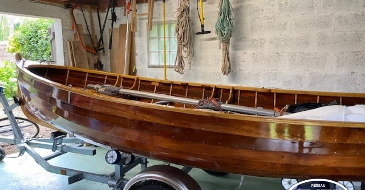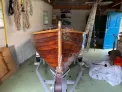 Bateau stocké en garage, bâche sur mesure avec sangles qui recouvre l’ensemble du bateau.