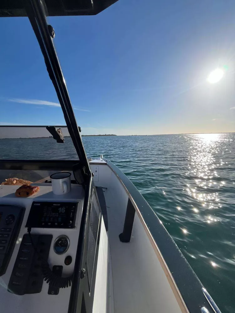 Vendue avec taud de soleil pour ombrager le cockpit arrière et une table pour déjeuner