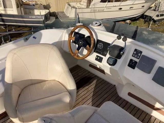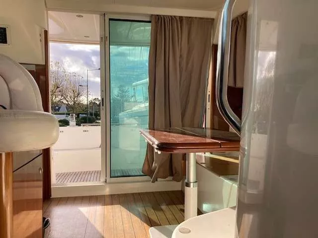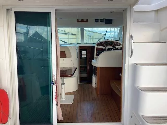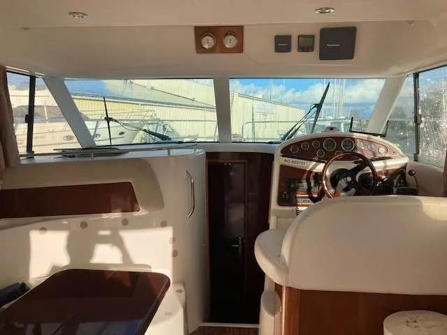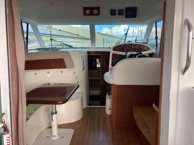 • Poste de pilotage au fly avec deux sièges pilote, banquette, table amovible, commande du pilote, commande des flaps, commande du propulseur d’étrave