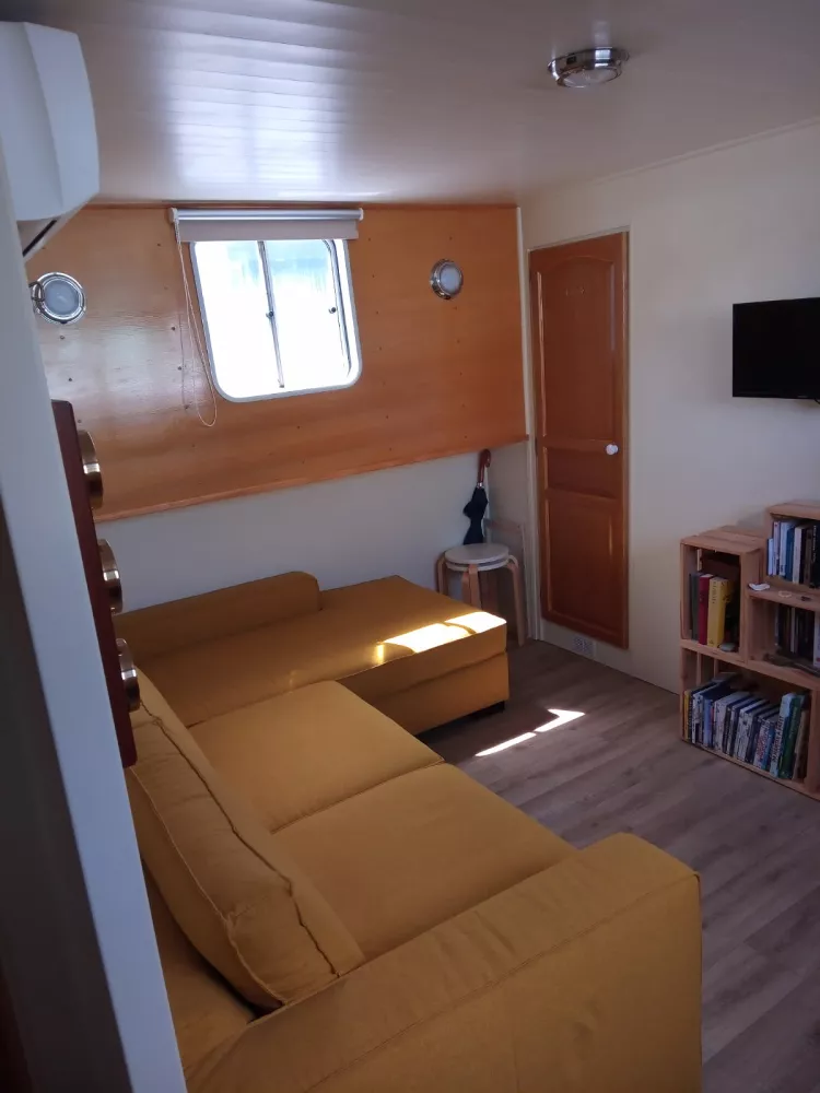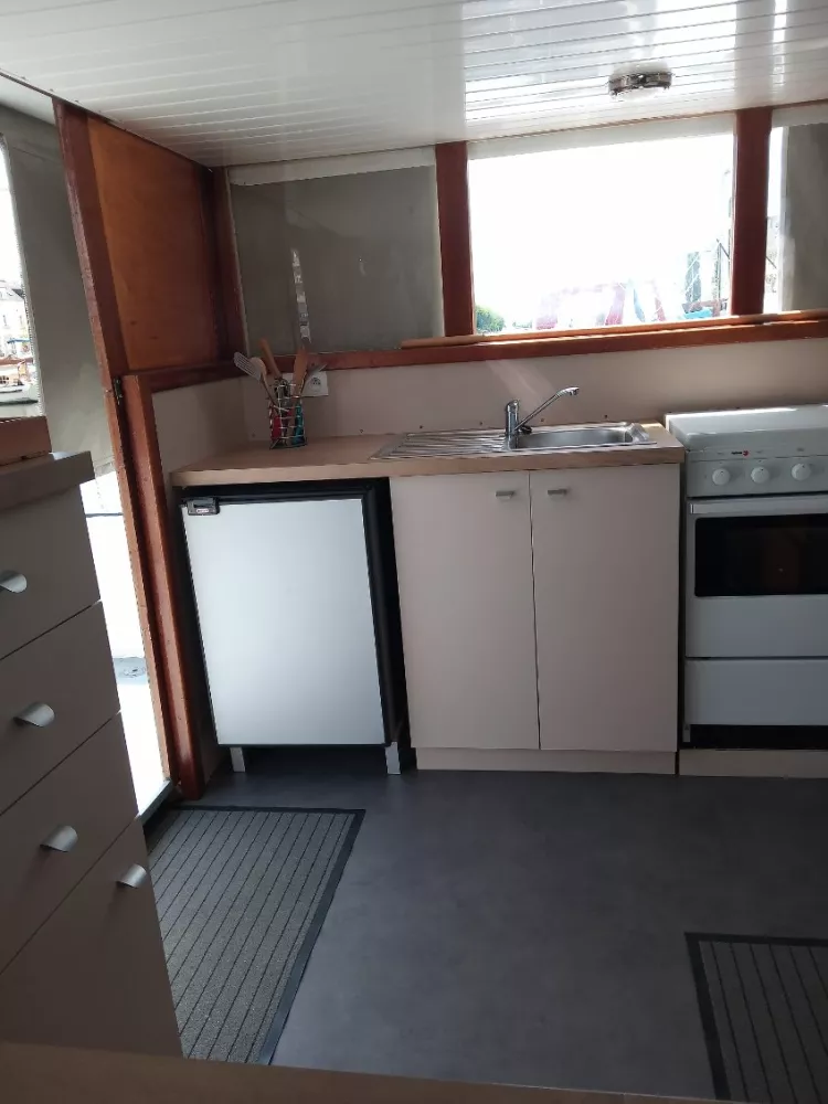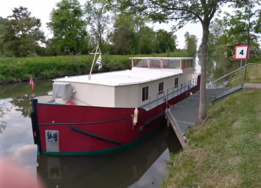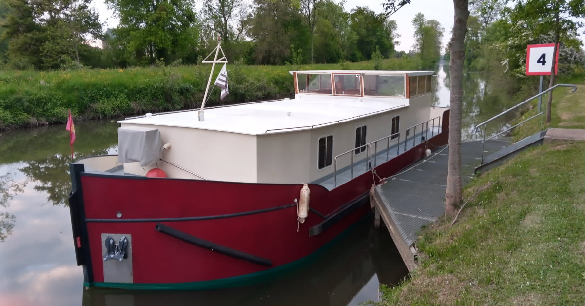 La péniche est visible sur rendez vous à Multi-Nautique à Nivillac.