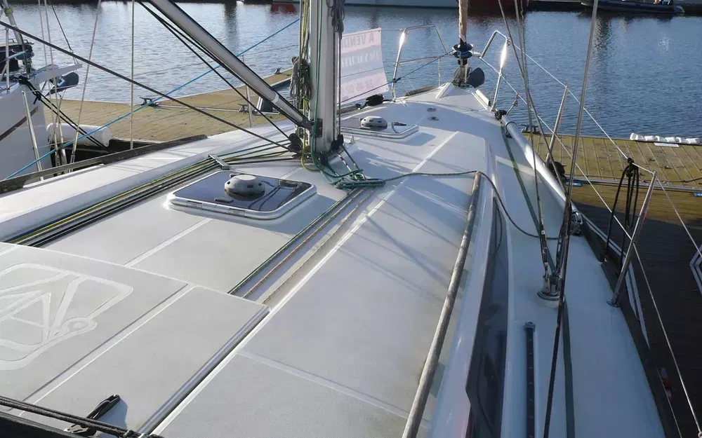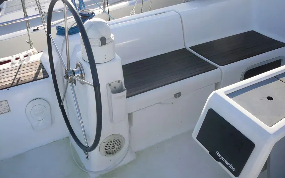 Je propose à la vente ce Dufour 380 GL de 2014, un voilier reconnu pour son équilibre parfait entre performance, confort et sécurité, idéal aussi bien pour la croisière familiale que pour des navigations plus sportives.