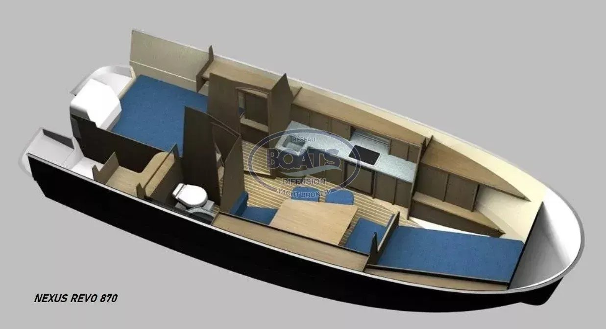 Le Nexus Revo 870 est un bateau moderne et élégant, idéal pour la navigation de plaisance, les croisières fluviales et côtières abritées. Conçu pour offrir confort, sécurité et facilité de manœuvre, il séduit par ses lignes contemporaines et son aménagement intérieur optimisé.