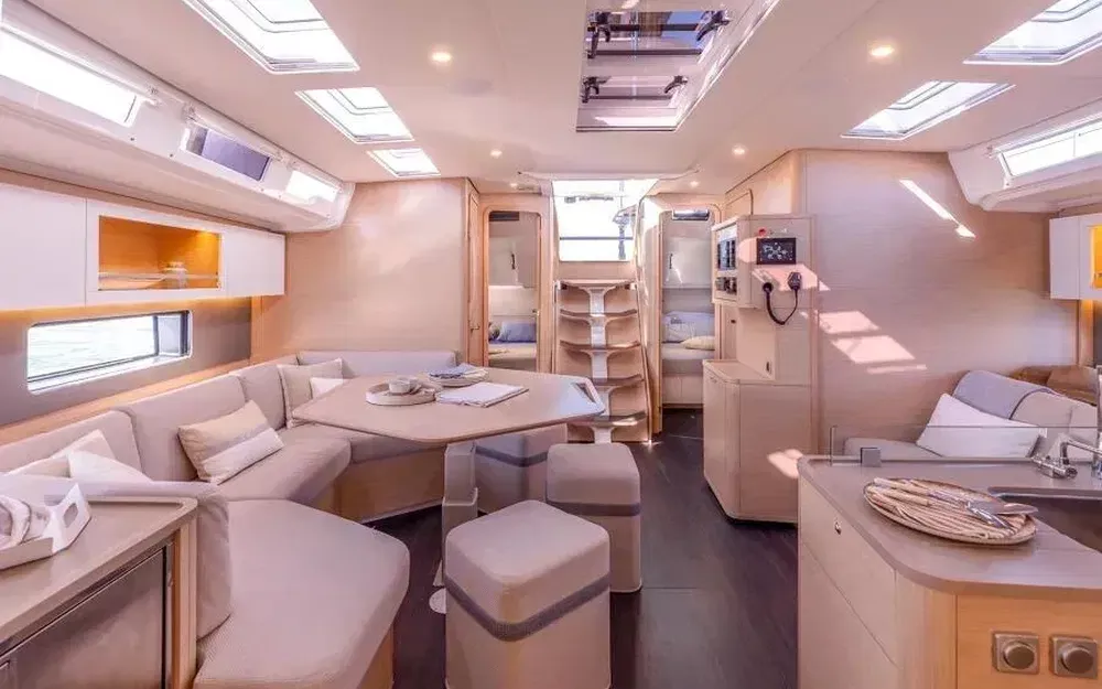 Le Dufour 48 propose une expérience sans pareille et favorise la vie à l’extérieur, un retour à l’océan. Un cockpit arrière qui garantit une navigation instinctive, sécurisante et conviviale. Nouveauté, un second cockpit avec bains de soleil est installé à l’avant du voilier offrant un confort incomparable en navigation comme au mouillage.