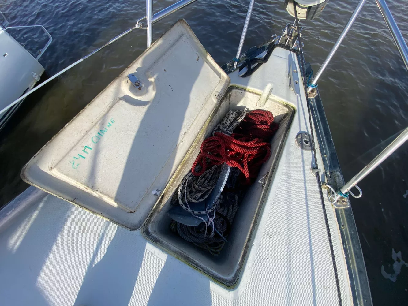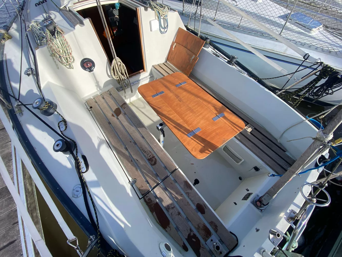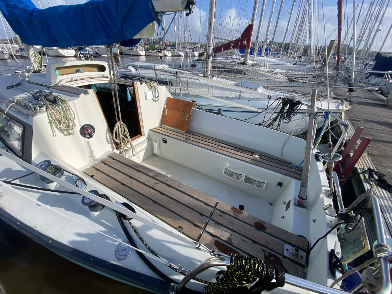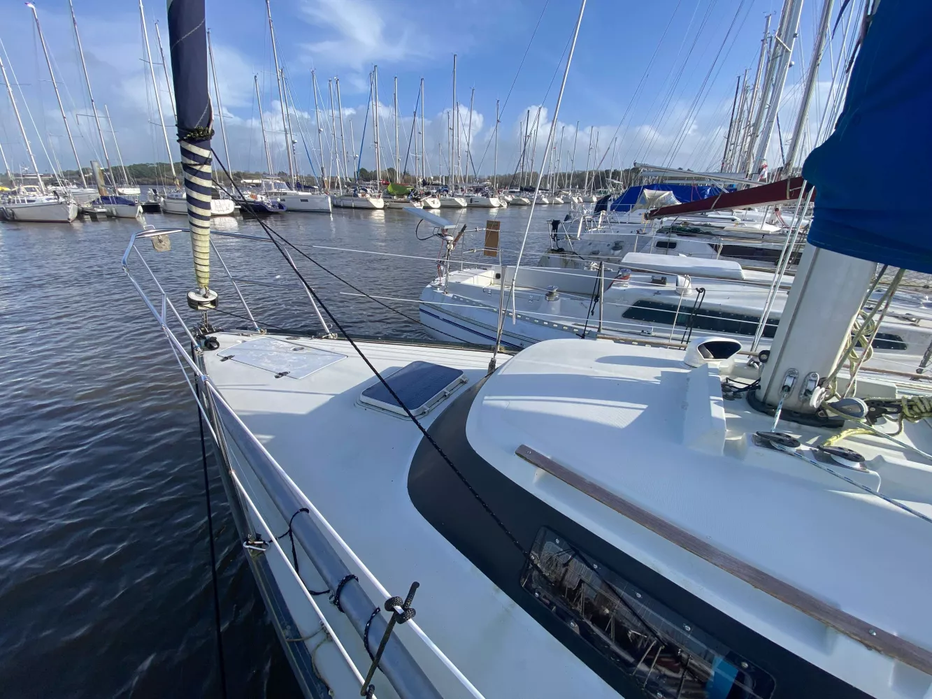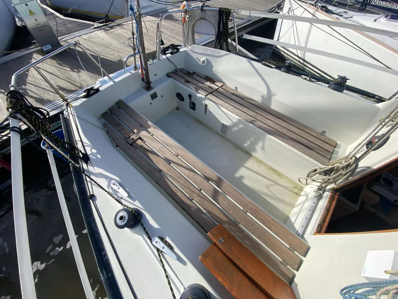 Dufour 2800 de 1978. Divers travaux effectués. Peinture de coque de 2021, ancre de 2019, pompe de câle de 2019, taquets coinceurs de 2021, filières de 2019, plexiglas de 2022, vache à eau de 2018, vannes + passes-coque de 2018, wc marin de 2018, gréement de 2023, rideaux intérieurs de 2020, batteries servitude et moteur de 2023, circuit 12V et 220V de 2020, victron de 2020, pilote automatique de 2021, sondeur loch speedo de 2019…