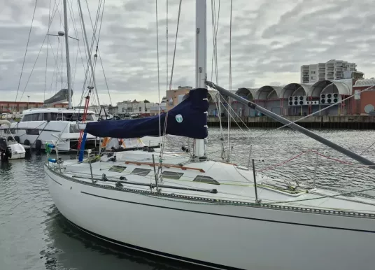 Cabine avant : couchette double. Carré : 4 couchettes simples + grande couchette sous cockpit. Mousses récentes, WC Jabsco révisé 2024.
