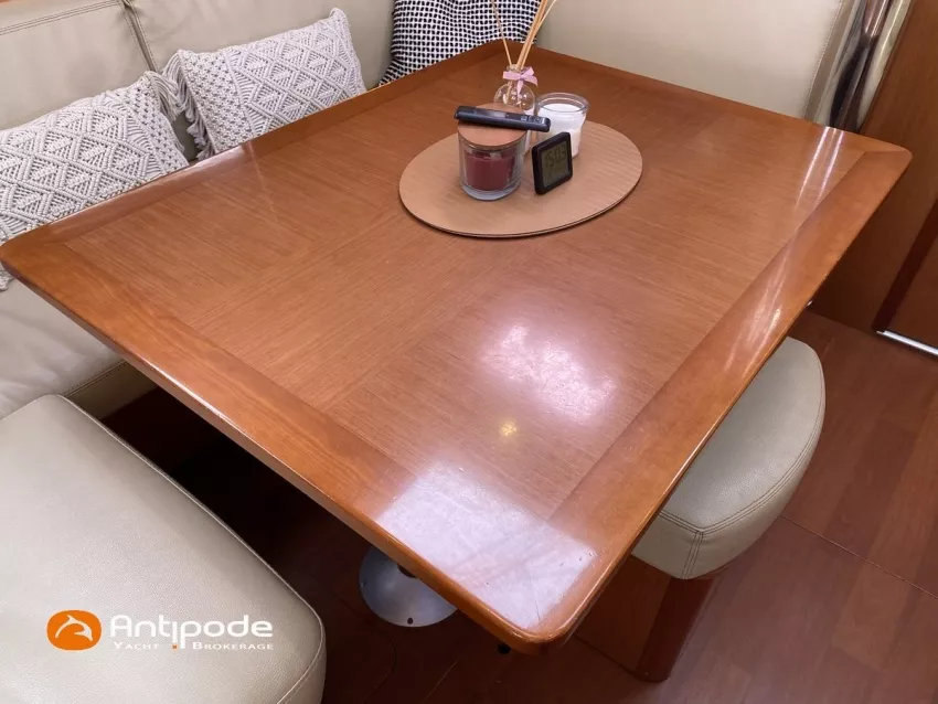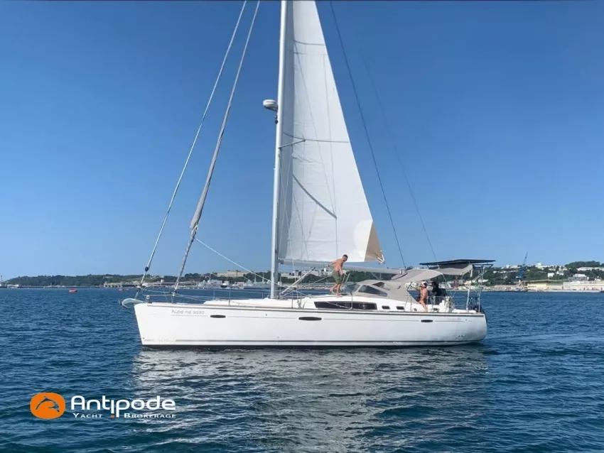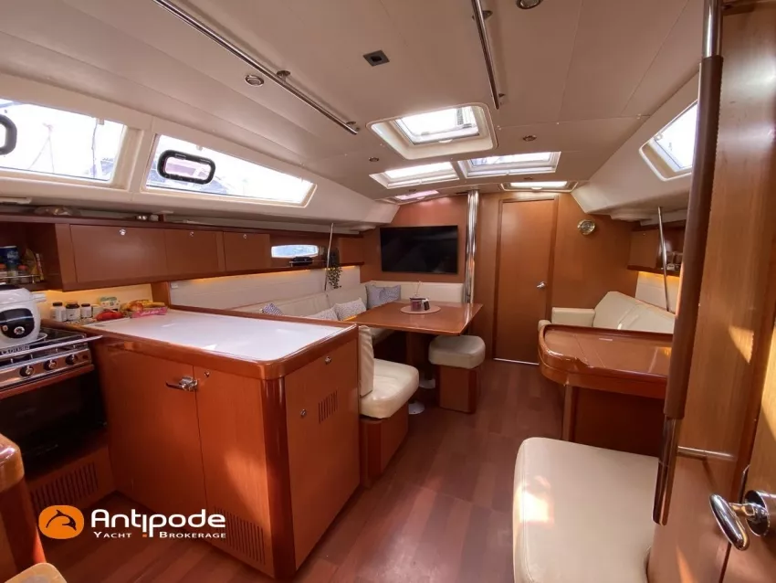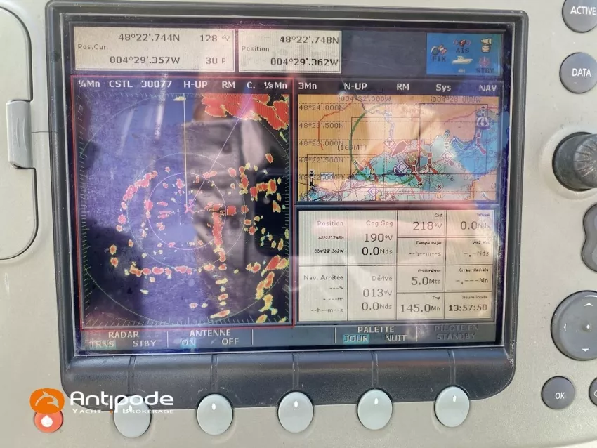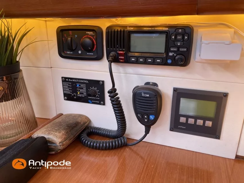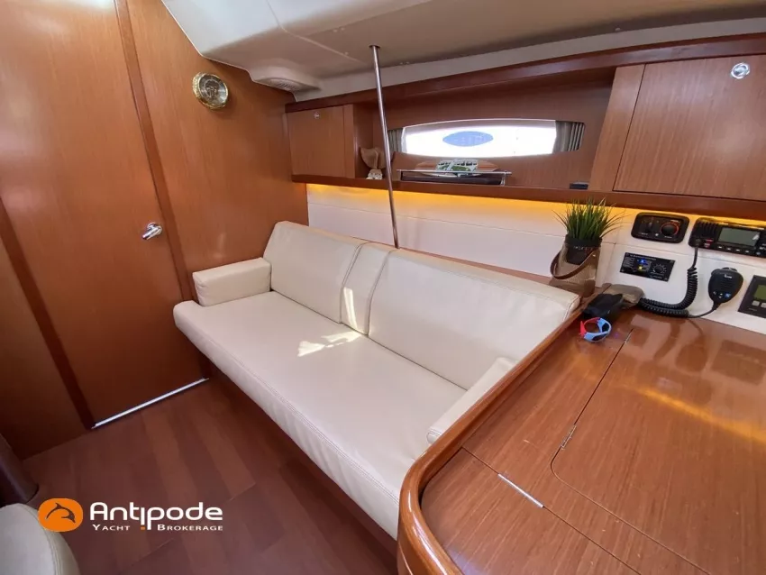 OCEANIS 46, 2009, YANMAR, 75 cv Propulseur d'étrave, Version GTE, Version d'aménagement intérieur 1 cabine avant, 2 cabines arrières, 2 cabinets de toilettes et douche, Selleries carré simili cuir, Winch électrique de manoeuvre sur roof, Rail d'écoute de grand-voile sur le roof, Passavants teck, Fond de cockpit latté teck, Table de cockpit avec abattants bois, Double barre à roue, Capote de roof, Bimini top cockpit, Coussins de cockpit, Compteur de chaine au cockpit, Portique arrière, Mât enrouleur posé sur le pont - service 2023, Génois sur enrouleur, Trinquette sur enrouleur - 2018, Spinnaker asymétrique, Pilote automatique in board Raymarine, GPS / lecteur de carte dans le cockpit - E80, Radar avec radôme sur support de mât, Transpondeur AIS (émetteur récepteur), Balise de détresse, Unité réfrigérante 12 V ouverture par le dessus, Unité réfrigérante 12 V porte frontale, Four à micro-ondes, Contrôleur / gestionnaire de batteries, Chauffage WEBASTO, Dessalinisateur a reviser, WC électrique, Panneaux solaires - 3x 245W, Eclairages intérieurs à Leds, Radeau de survie - 2026, Annexe , Moteur hors-bord, Visible Bretagne. Pour plus d'informations ou pour fixer un rendez-vous de visite, contact : François Mouchel 06 62 30 97 30 - francois@antipode-yachts.com
