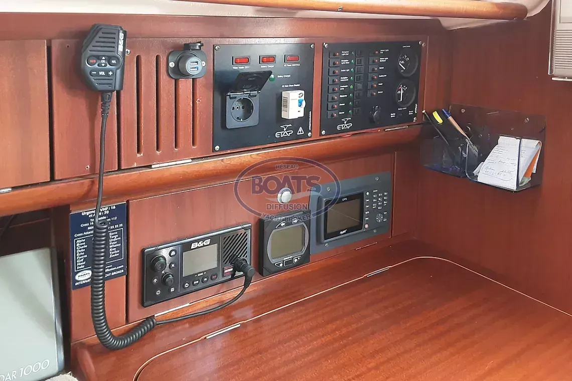 VISIBLE À LA ROCHELLE - CONTACTEZ JEAN-PIERRE OU AUDREY AU 06 09 42 34 55 - europeanboatcourtage@gmail.com - Découvrez ce superbe ETAP 32s de 2003 – Version petit tirant d’eau (1,30 m) avec quille tandem et barre franche. Voilier homologué insubmersible. Ce bateau offre un aménagement chaleureux en acajou, avec 2 cabines doubles et un carré spacieux, permettant d’accueillir jusqu’à 6 personnes. Le bateau est équipé pour le confort extérieur avec bimini, taud de soleil et cockpit convivial. Le pont est équipé d’un revêtement antidérapant en bon état. Les voiles sont hivernées chaque année. Le bateau est resté sans naviguer pendant six ans avant d’être racheté par son actuel deuxième propriétaire. Dernière révision mécanique et carénage réalisés en 2025. Bateau réellement entretenu et prêt à naviguer.
