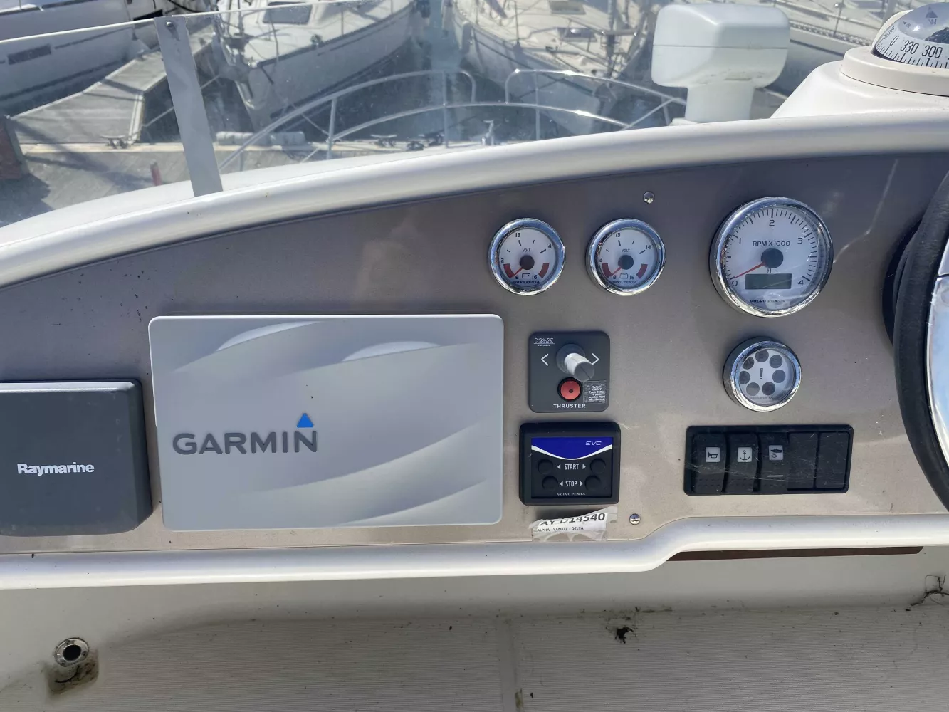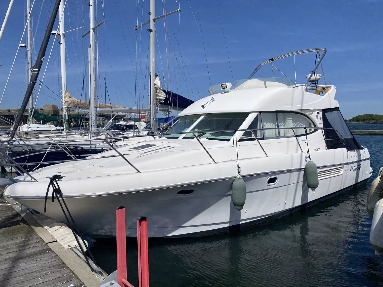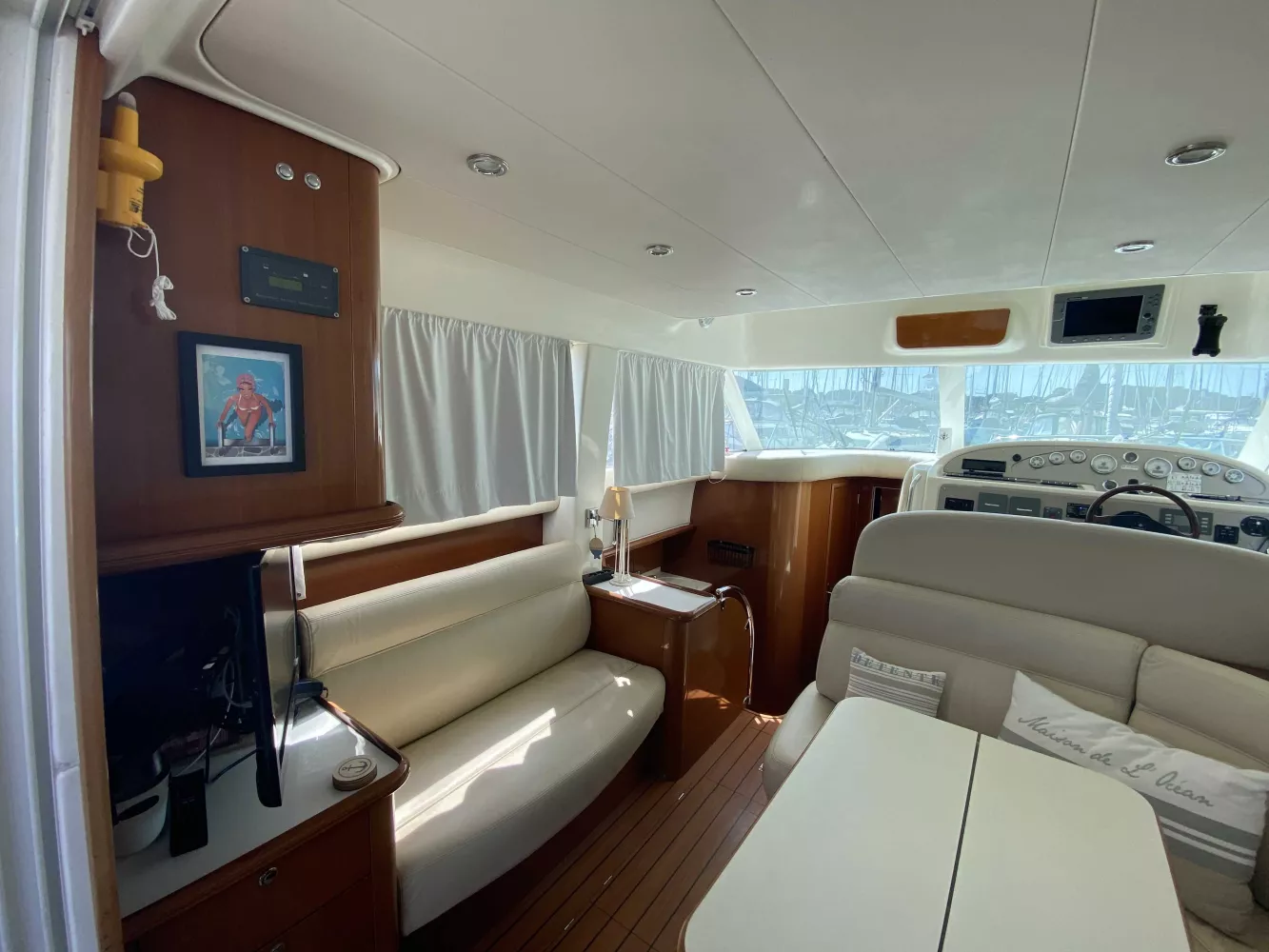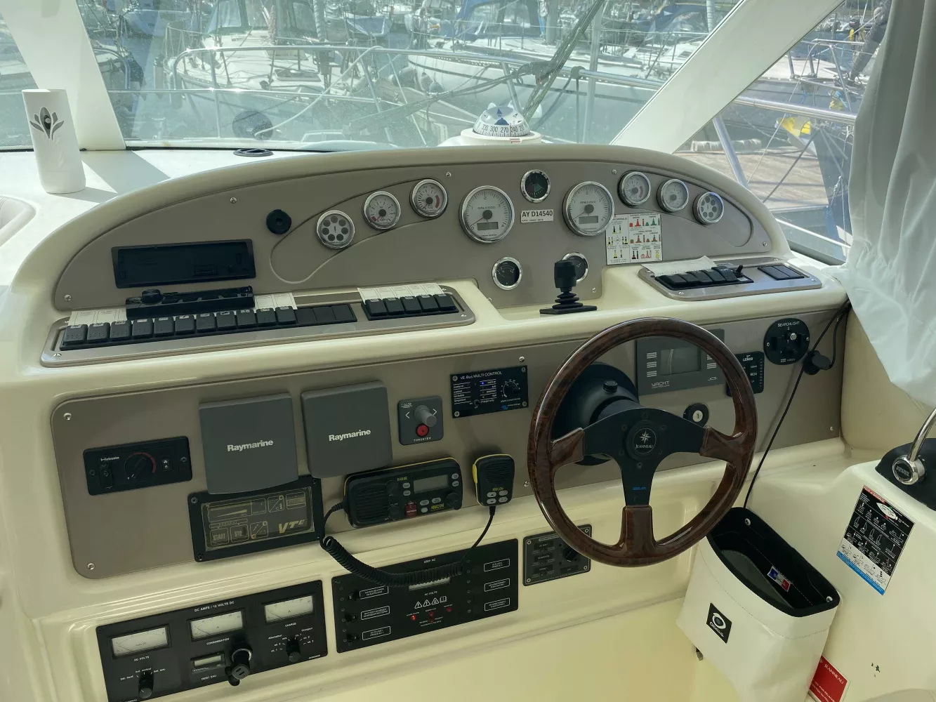 *Électronique : Traceur Garmin GPS 922XS au Fly, Pack électronique Raymarine C120 à l'intérieur, Radar Raymarine, Flaps électriques, Pilote automatique, VHF fixe NAVICOM, Yacht controler permettant des manœuvres très faciles.