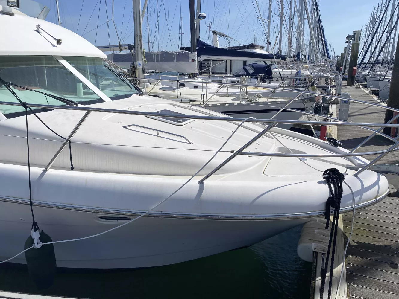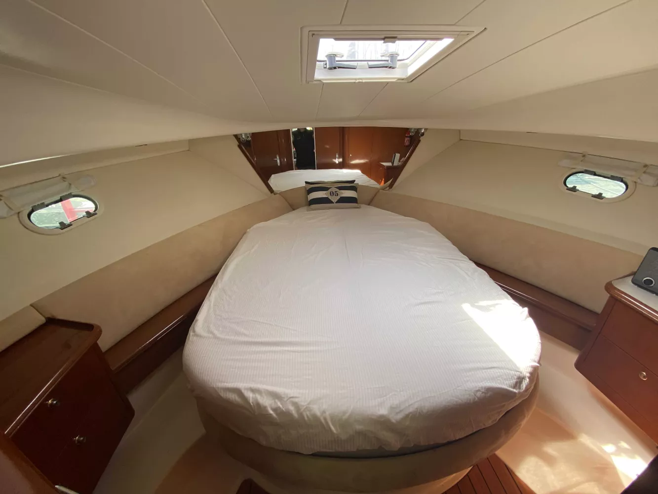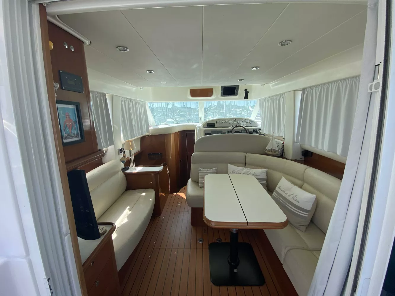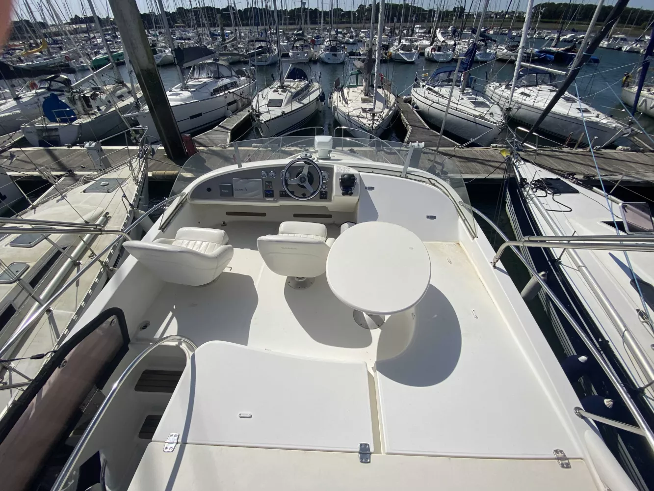 *Électronique : Traceur Garmin GPS 922XS au Fly, Pack électronique Raymarine C120 à l'intérieur, Radar Raymarine, Flaps électriques, Pilote automatique, VHF fixe NAVICOM, Yacht controler permettant des manœuvres très faciles.