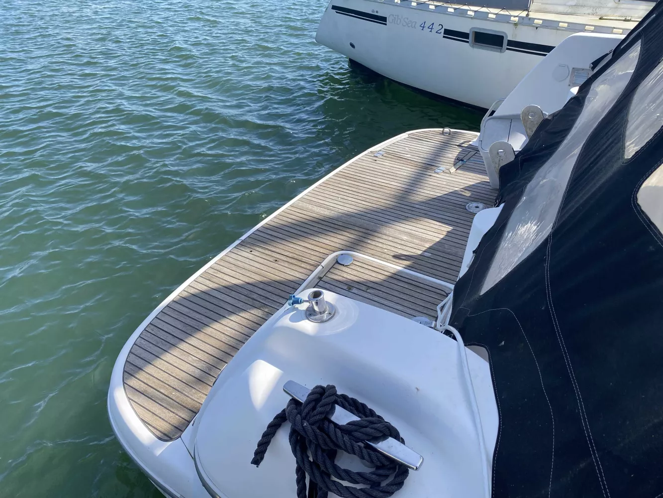 *Extérieur : Version avec Flybridge, Propulseur d'étrave au poste de pilotage et au Fly, Guindeau électrique, Cockpit + plateforme arrière teck, Table de cockpit teck, Table de cockpit au Fly, Douchette, Échelle de bain, Bain de soleil avant, Taud de fermeture arrière de cockpit, Bimini au Fly, Housses de protection poste de pilotage de fly + sièges au fly, Projecteur de pont, Taquets au maitre bau.